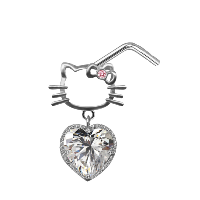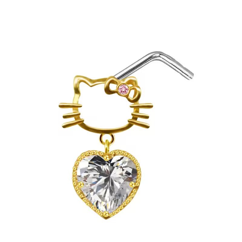 أقراط أنف على شكل رأس قطة من الألماس المجوف اللطيفة مرصعة بالزركون النحاسي