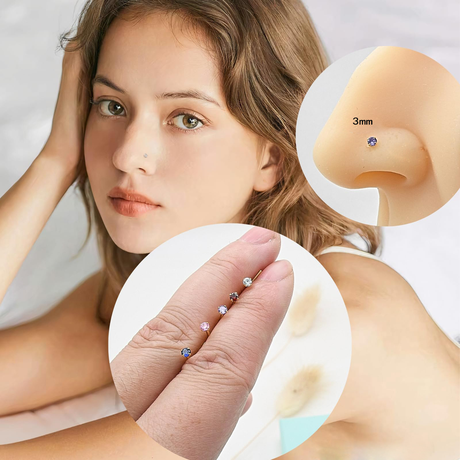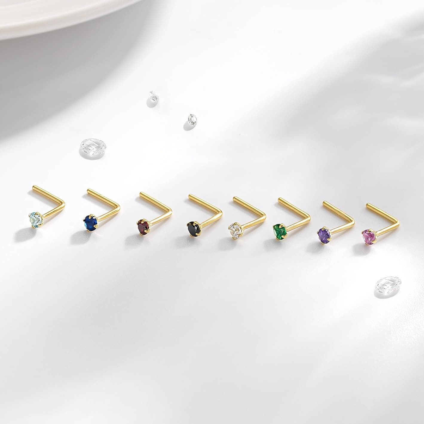 مجوهرات الأنف من الفضة على شكل حرف L من الألماس المستدير بأربعة مخالب