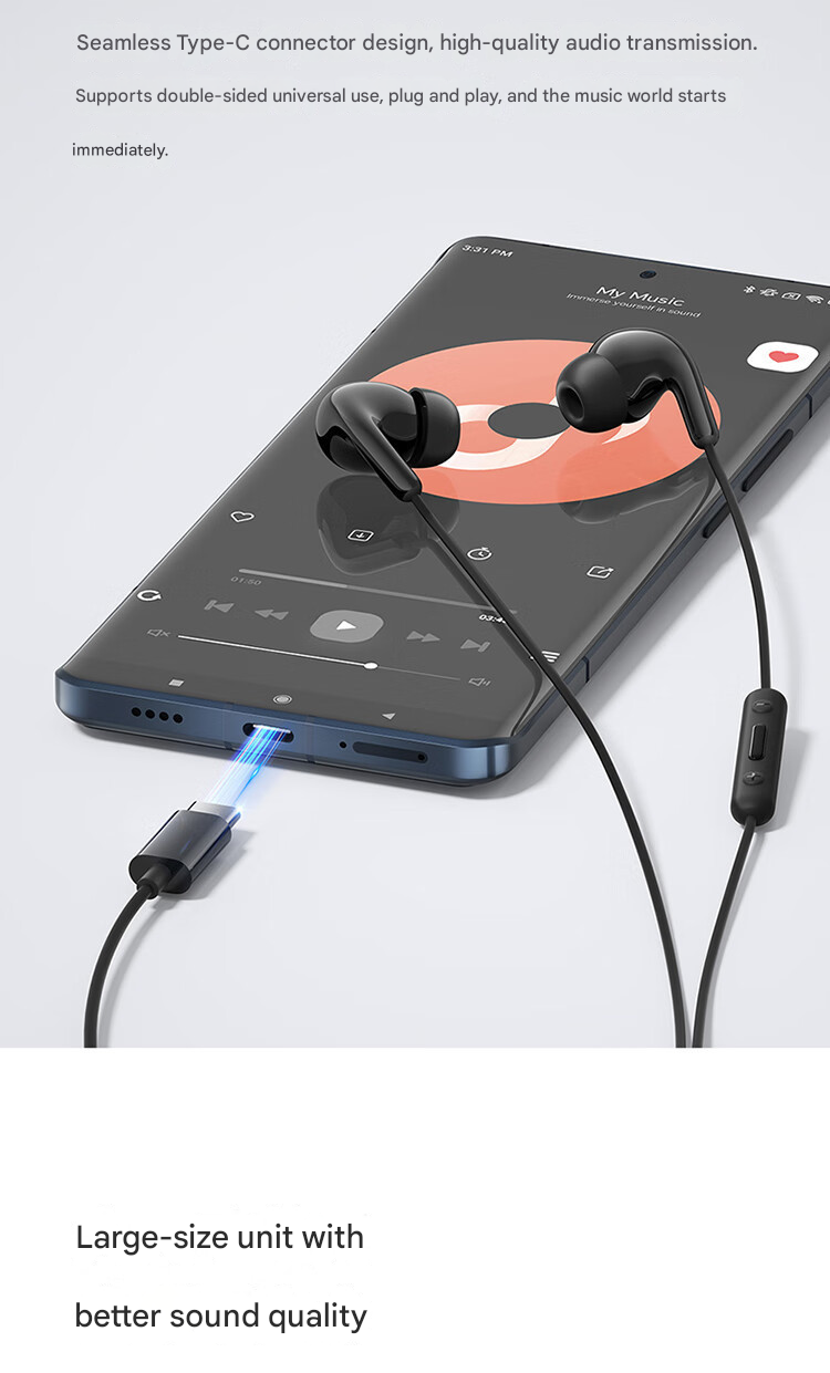 سماعات أذن سلكية Type-C مقاومة للماء والغباربصوت عالي الدقة وميكروفون مانع للضوضاء
