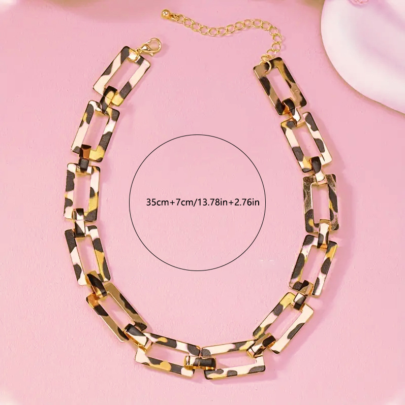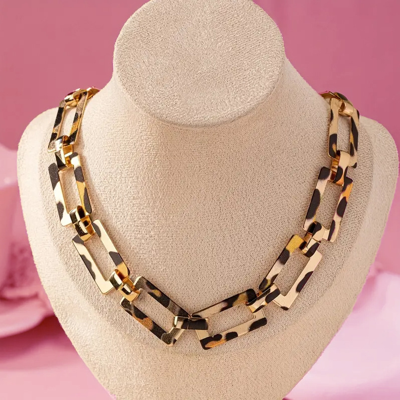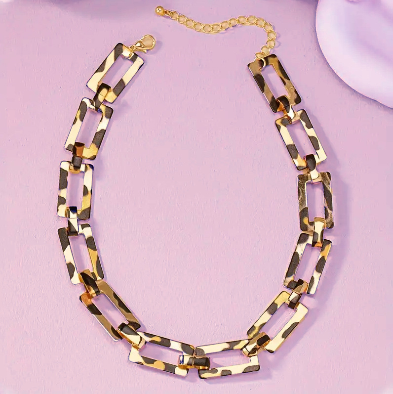 قلادة نسائية عصرية تتميز بسلسلة عريضة من حلقات مستطيلة بنقشة الفهد