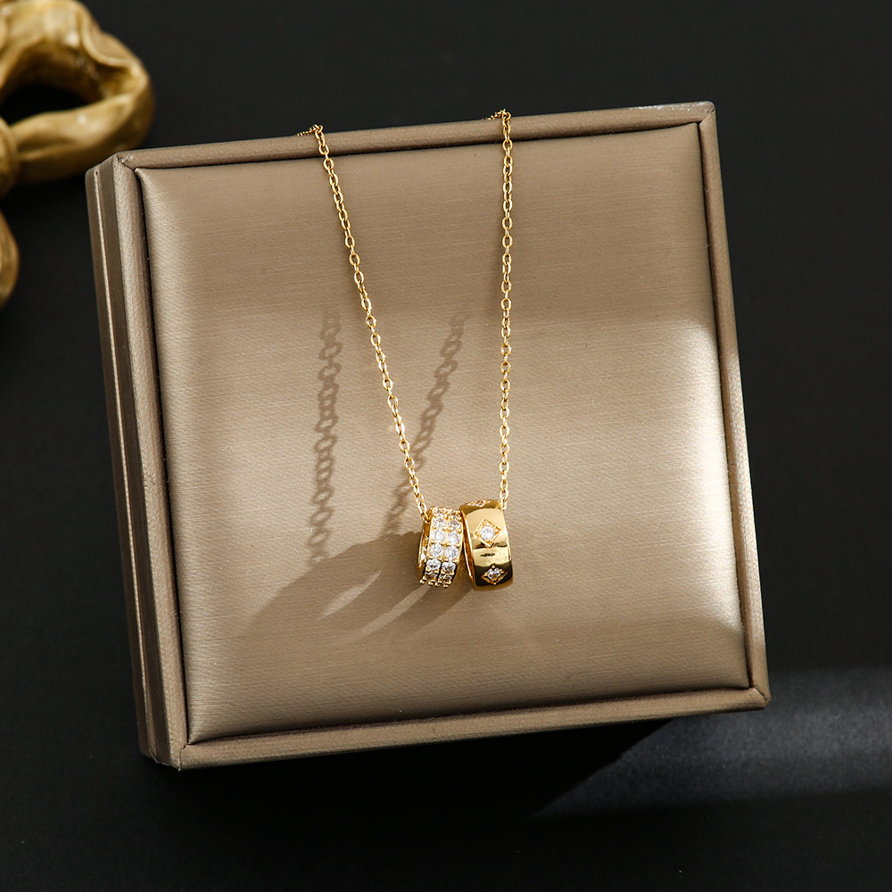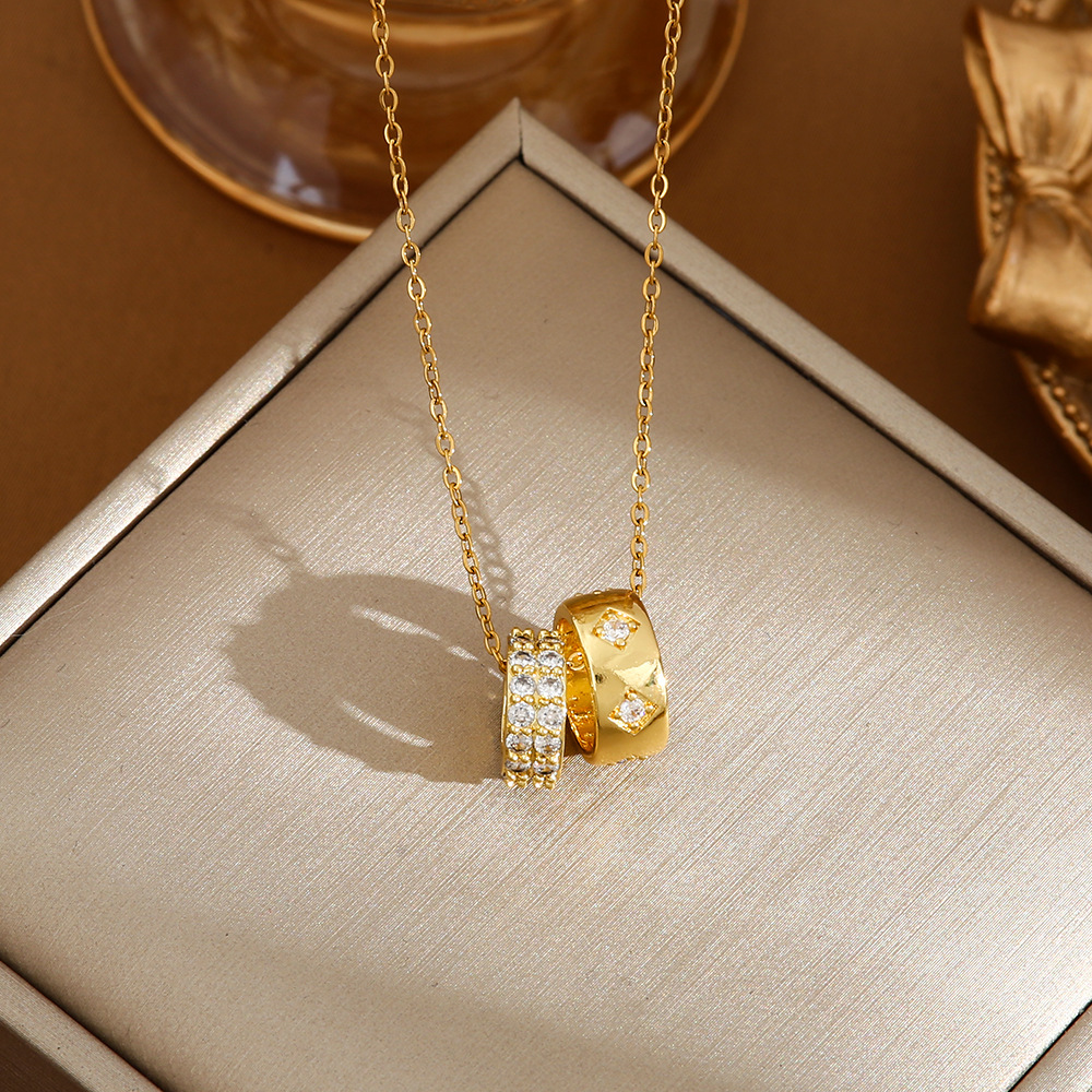 قلادة نسائية تتميز بتصميم عصري على شكل حلقتين متداخلتين