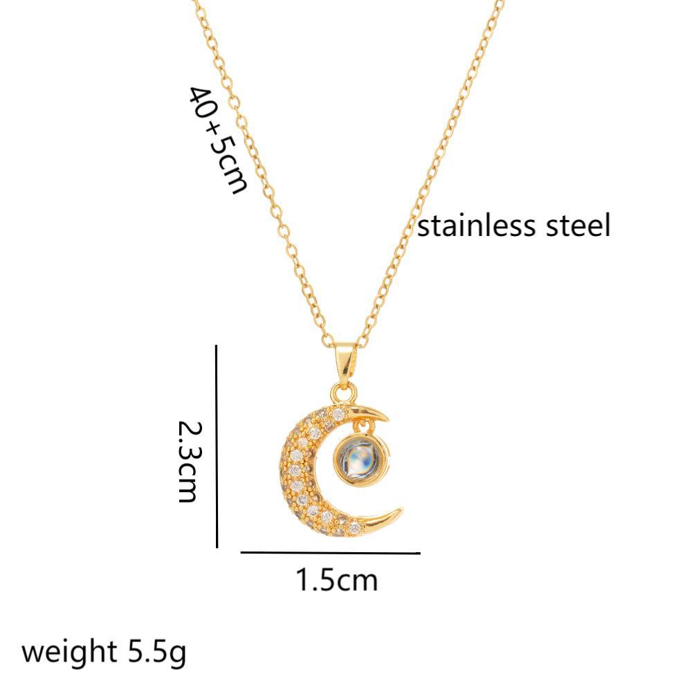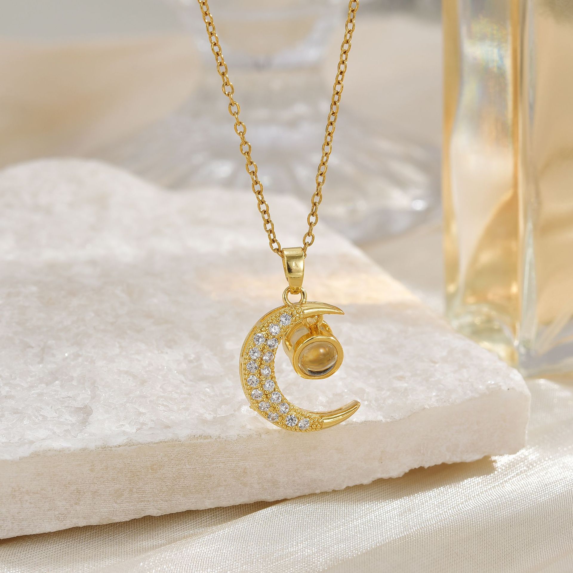 قلادة نسائية عصرية على شكل هلال لامعة تحتوي على حجر إسقاط ضوئي