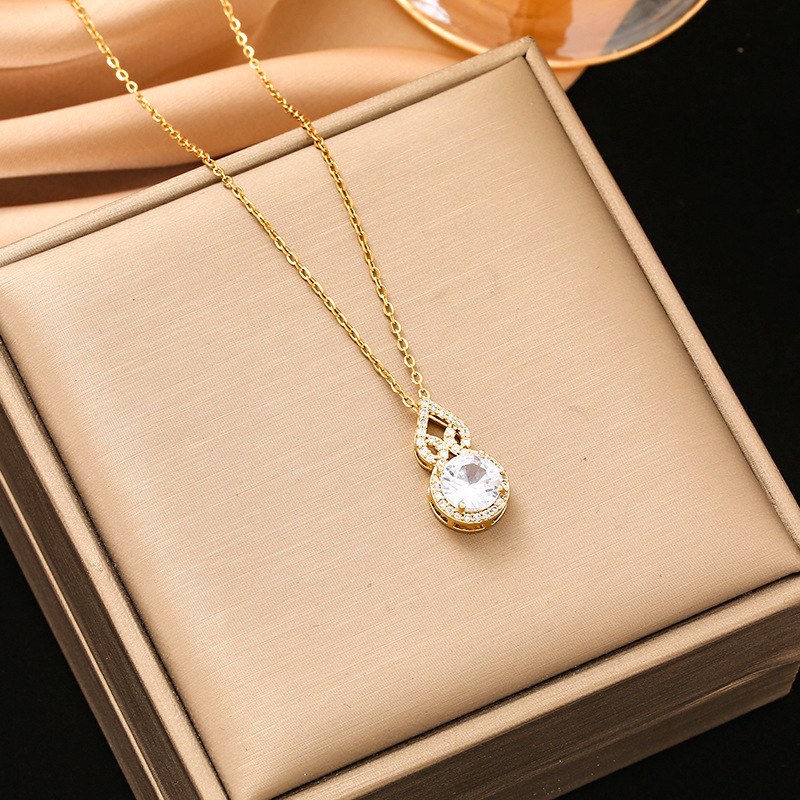 قلادة نسائية تتميز بتعليقة متلألئة مع حجر مركزي كبير ولامع
