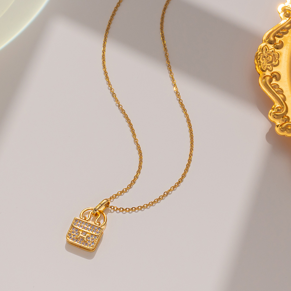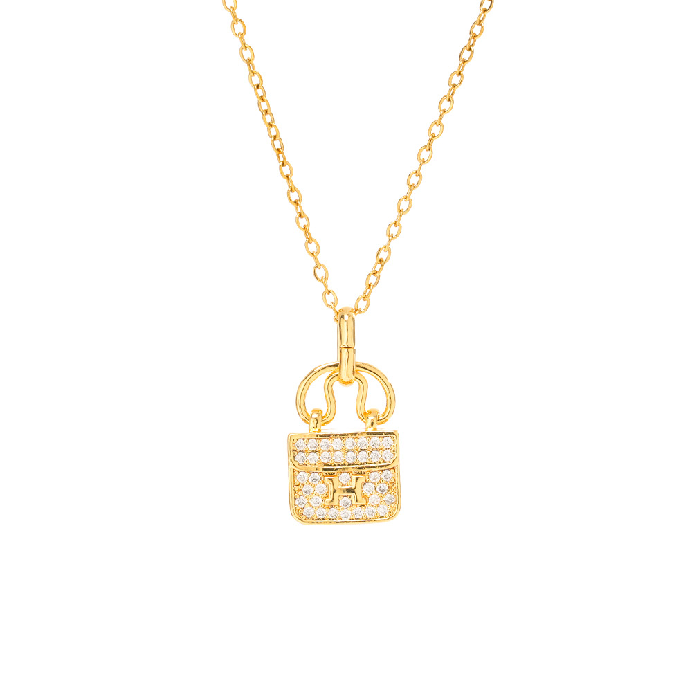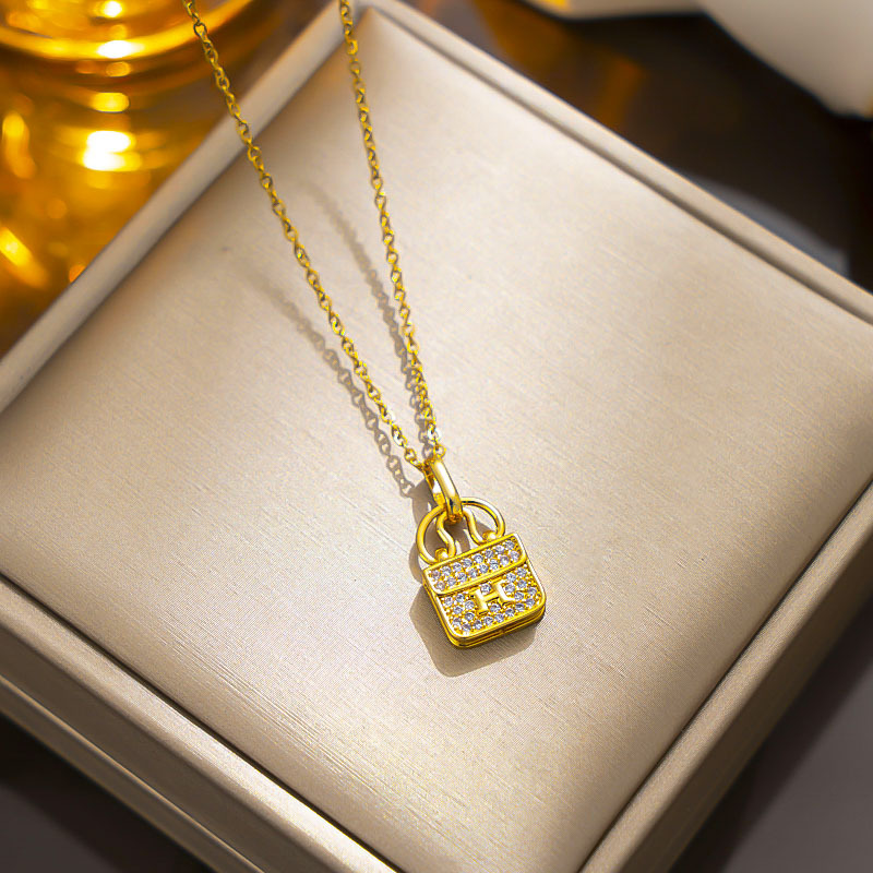 قلادة نسائية بتصميم سلسلة رفيعة مع تعليقة على شكل حقيبة يد صغيرة