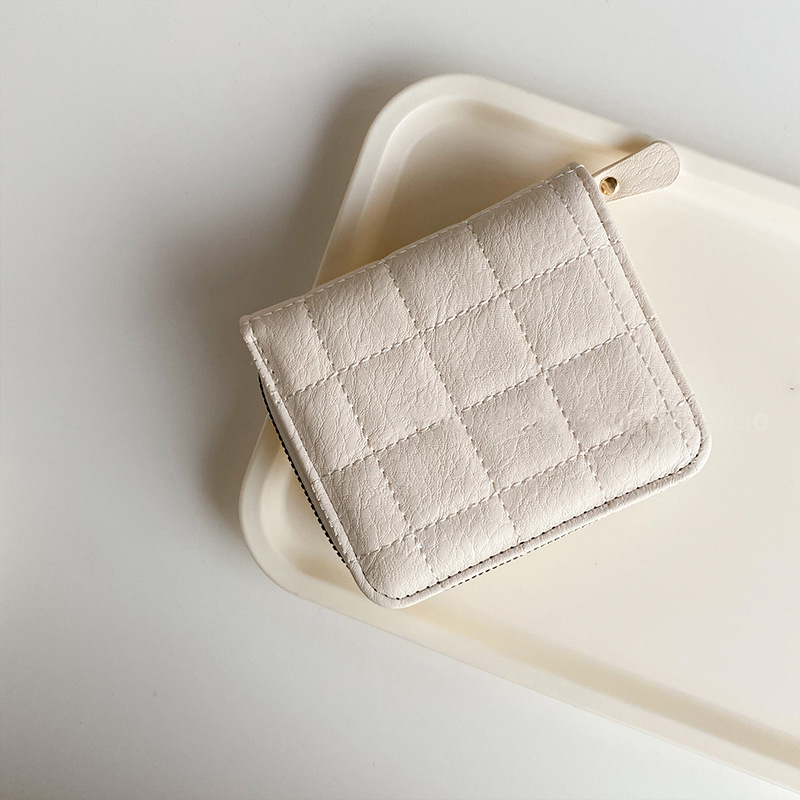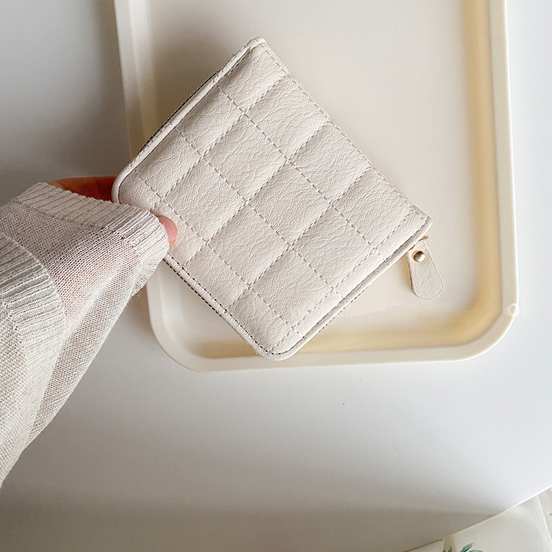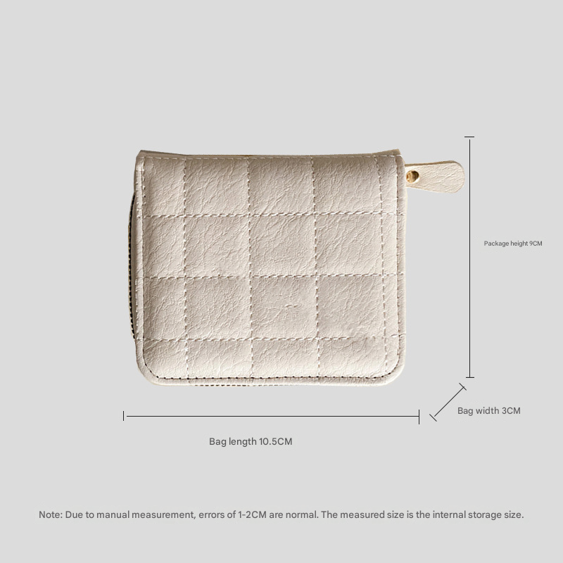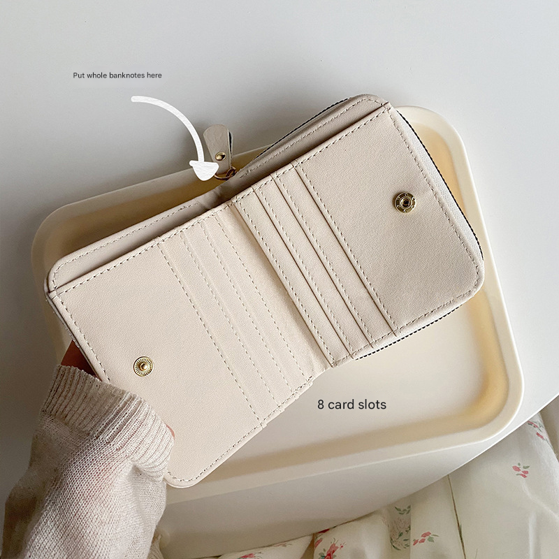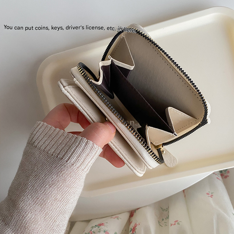 محفظة نسائية صغيرة بتصميم بسيط وناعم الملمس، تتميز بوجود فتحات للبطاقات، وجيب عملات معدنية بسحاب