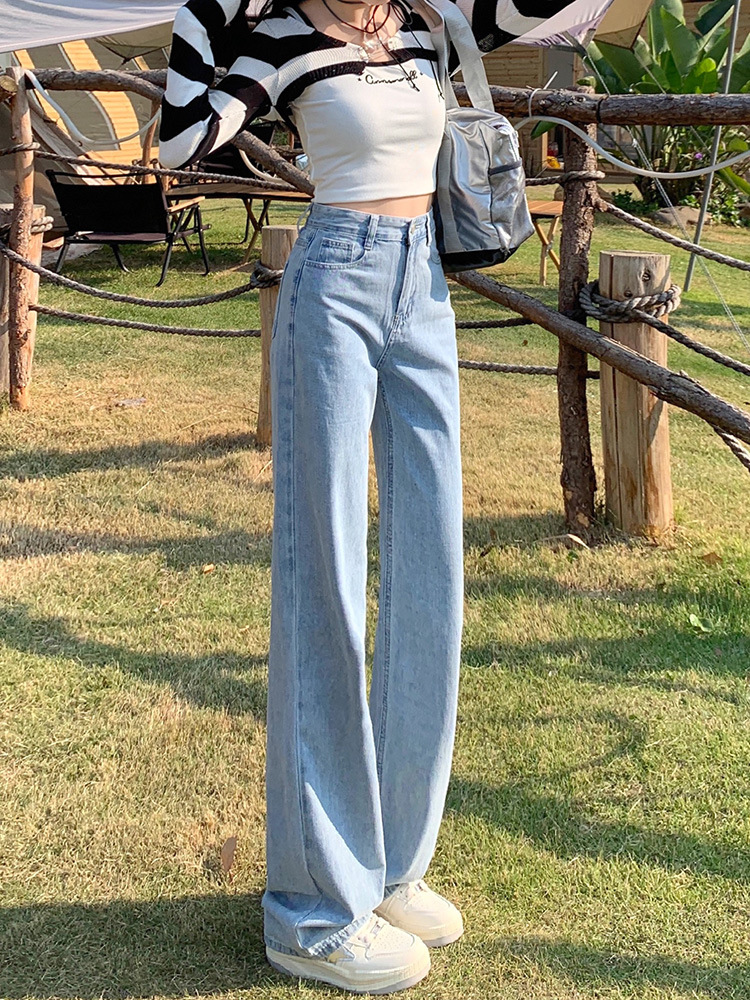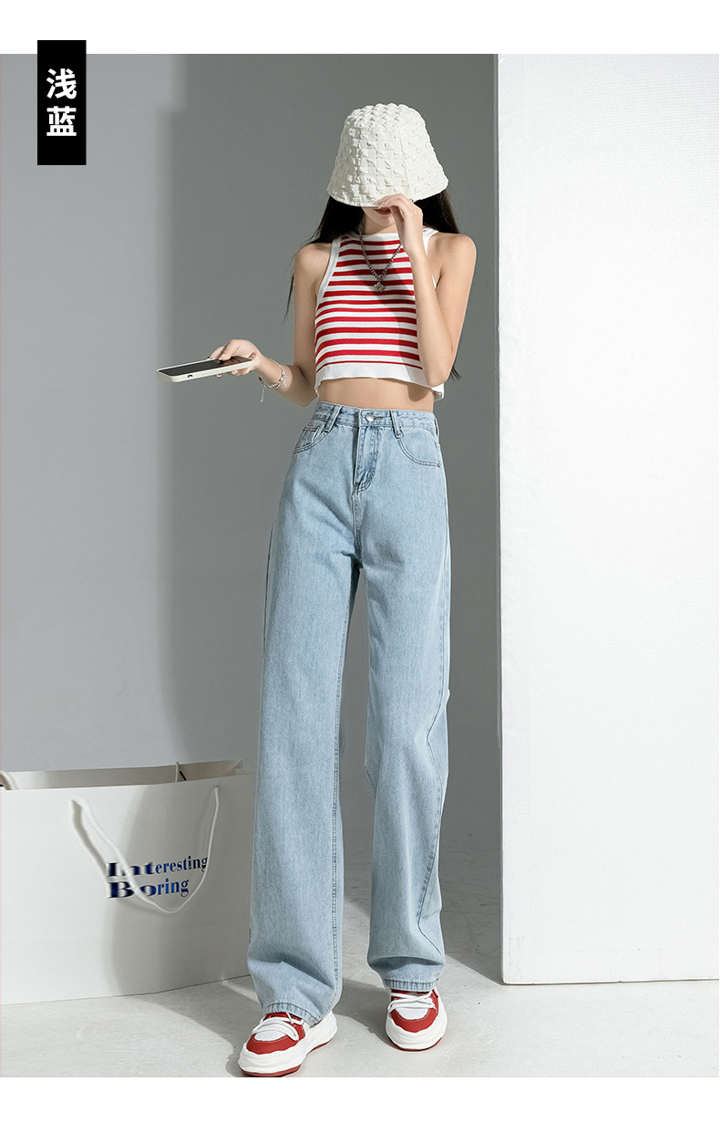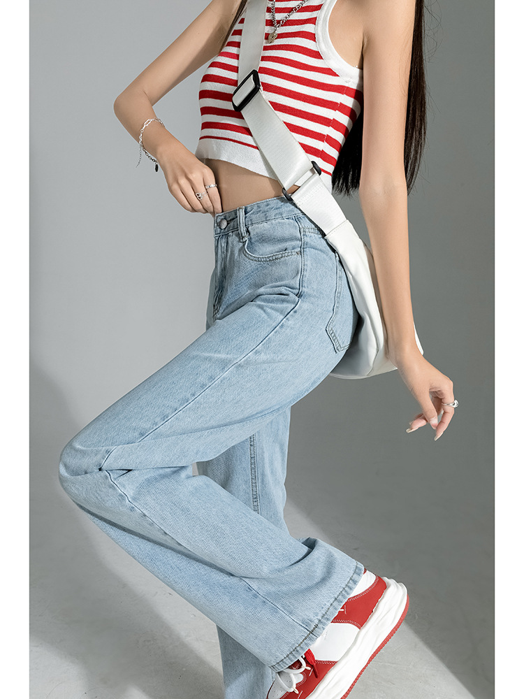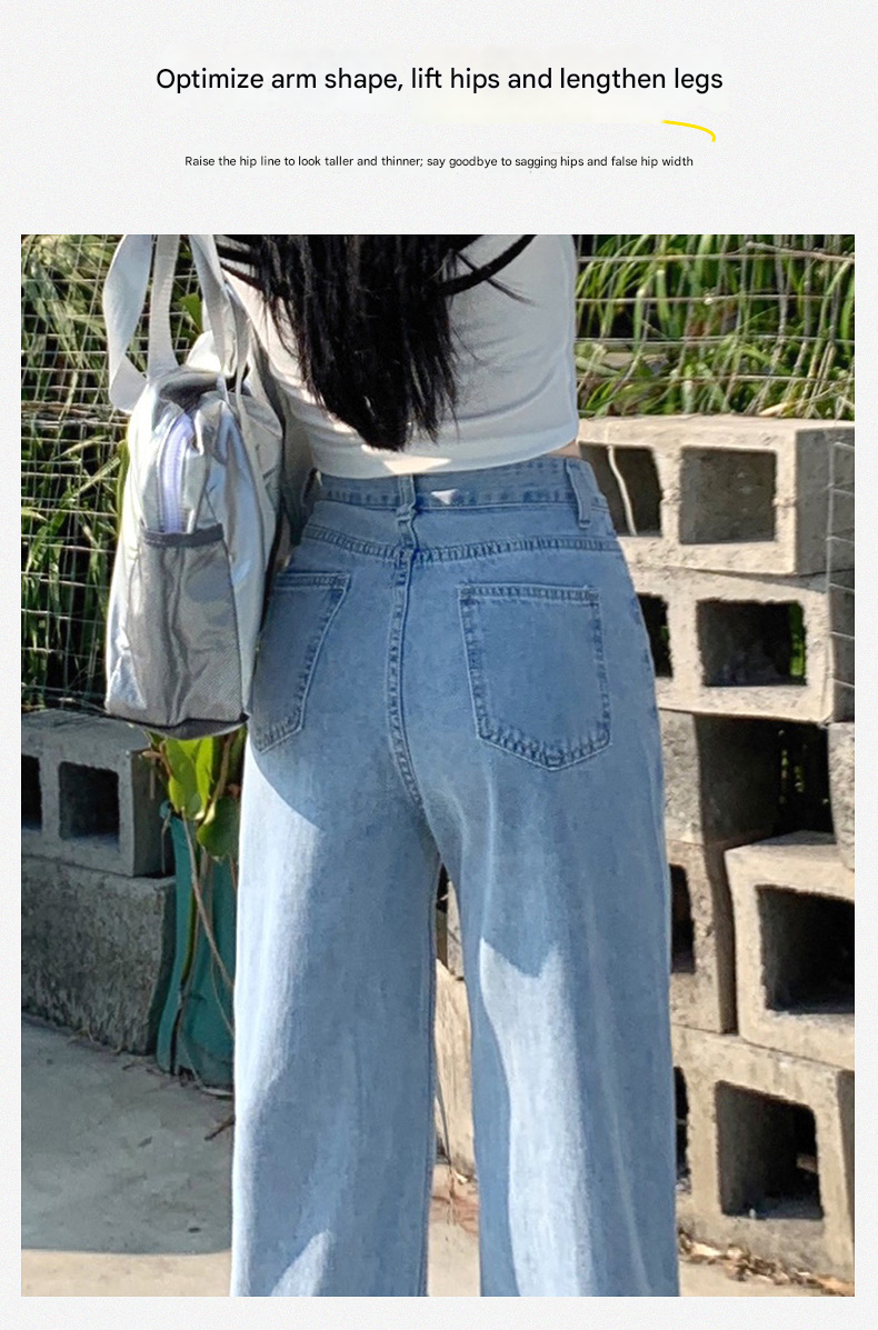 بنطلون جينز نسائي فضفاض بقصة أرجل واسعة وعالية الخصر