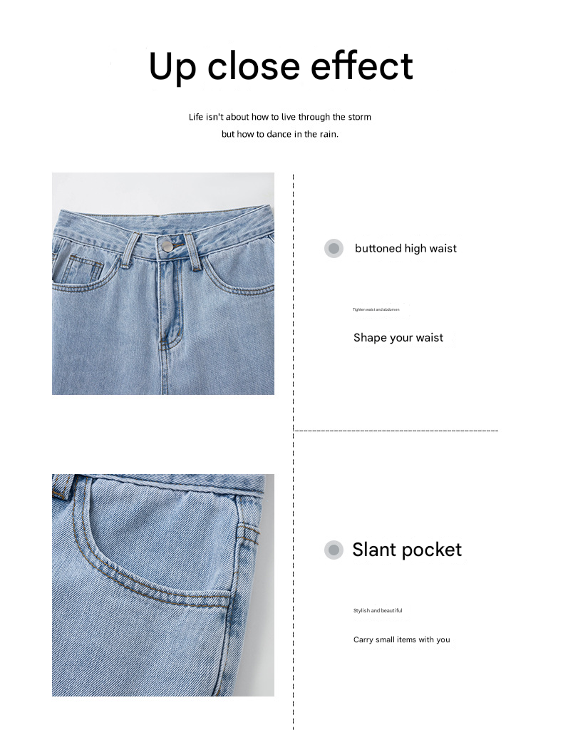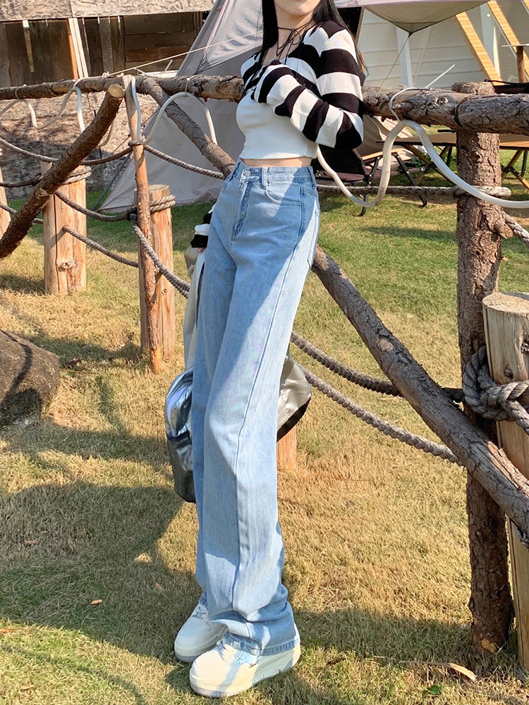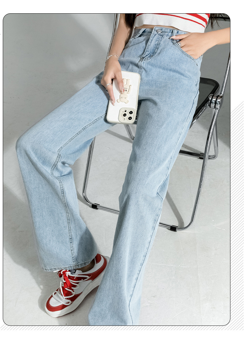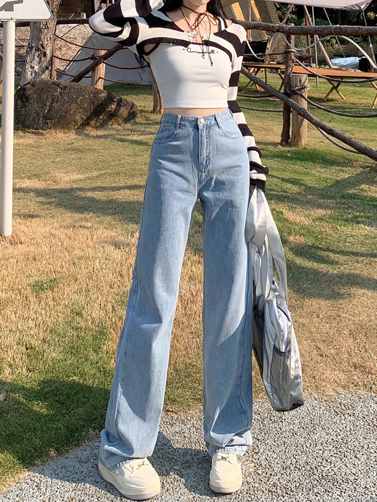 بنطلون جينز نسائي فضفاض بقصة أرجل واسعة وعالية الخصر