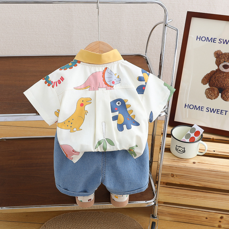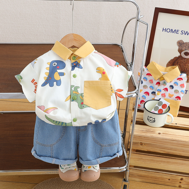 طقم ملابس صيفي ولادي من قطعتين،مزين بطبعات مرحة من الشخصيات الكرتونية الصغيرة