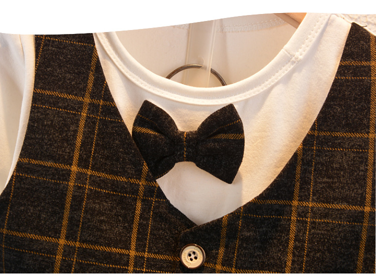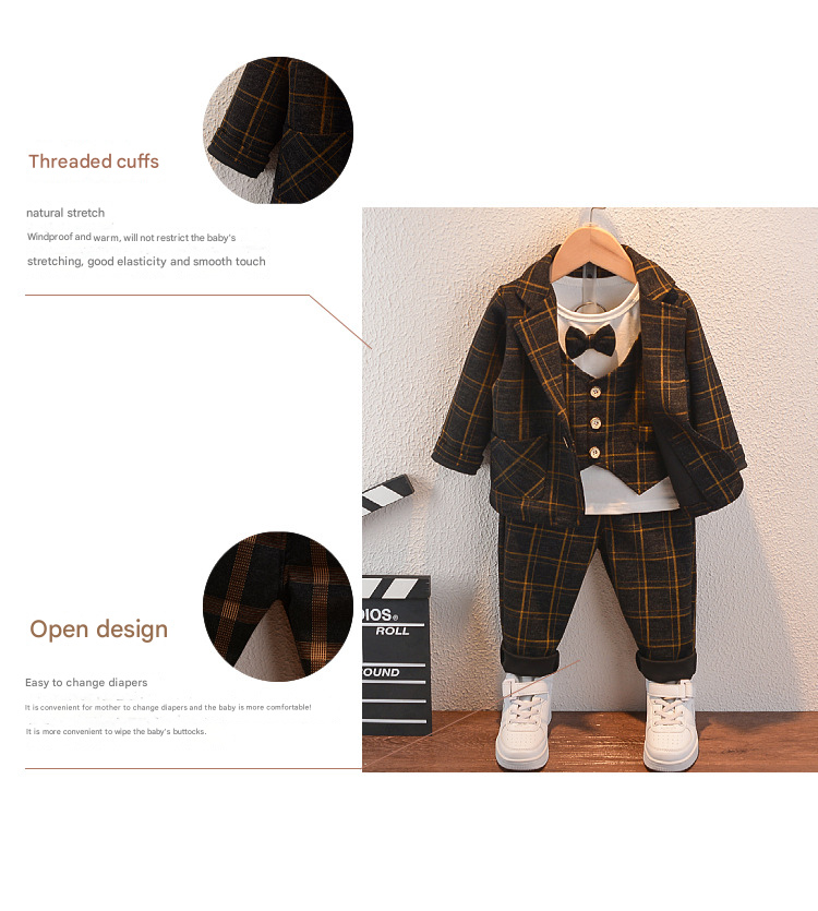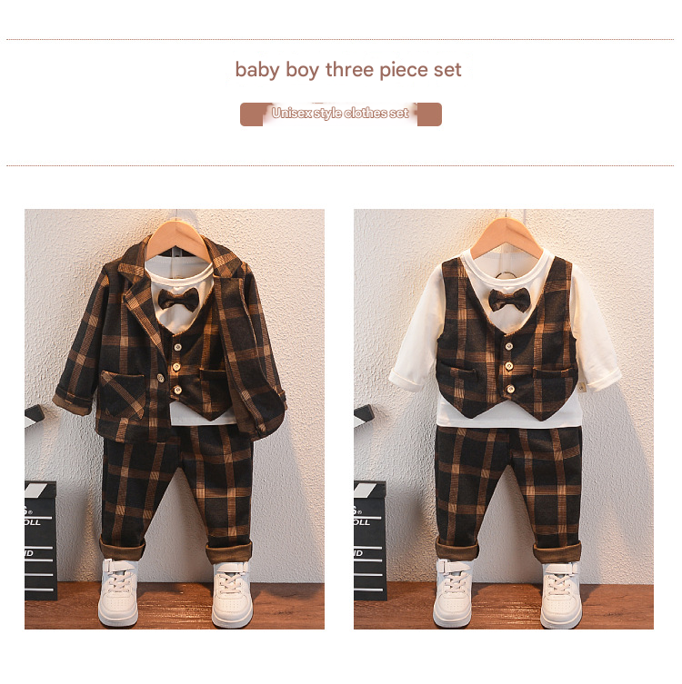 طقم رسمي أنيق للأولاد، بتصميم مخطط بزرين، وقميص داخلي أبيض بأكمام طويلة