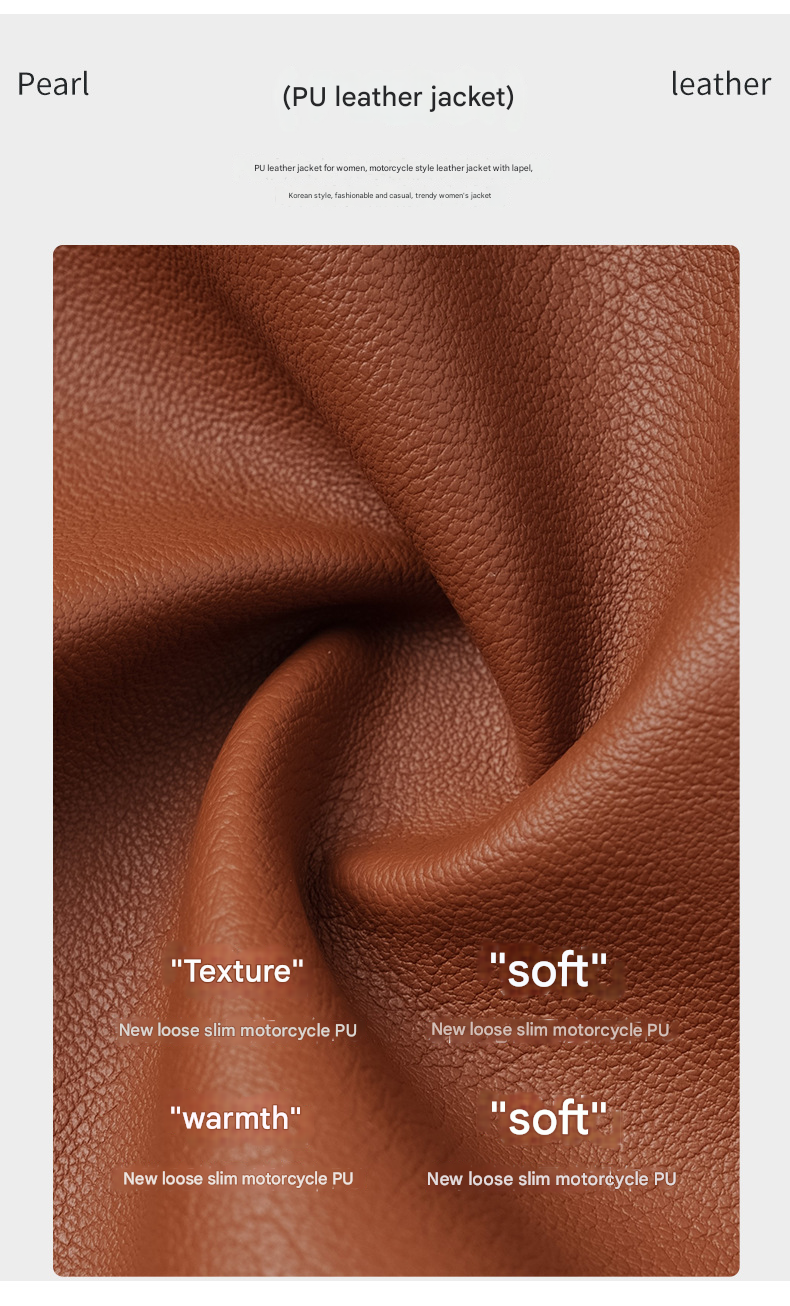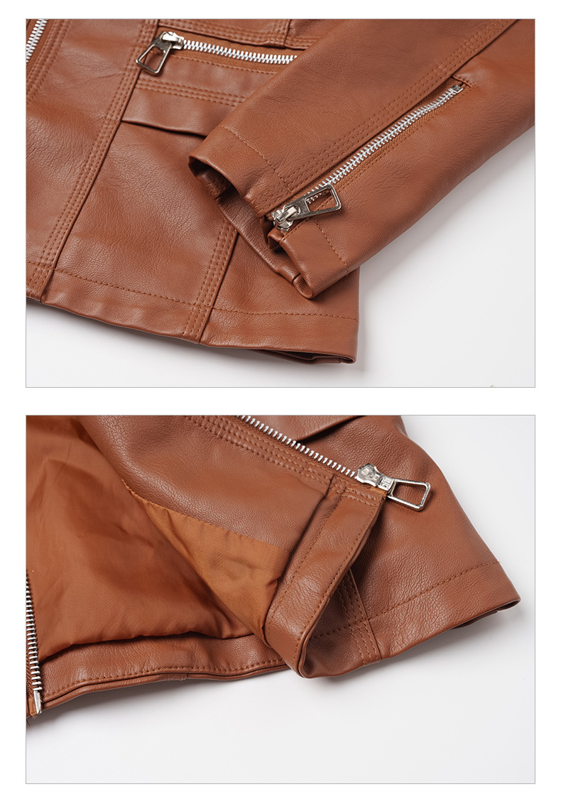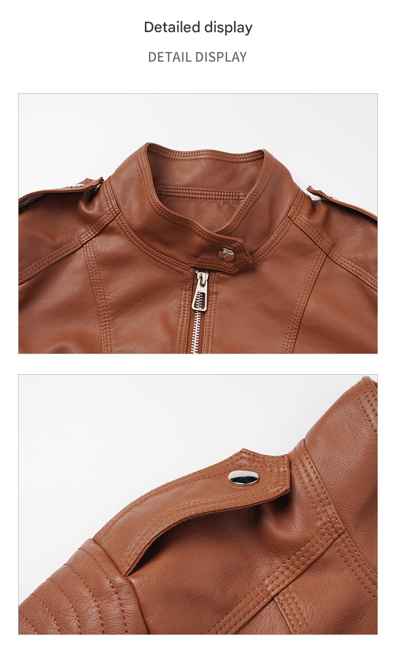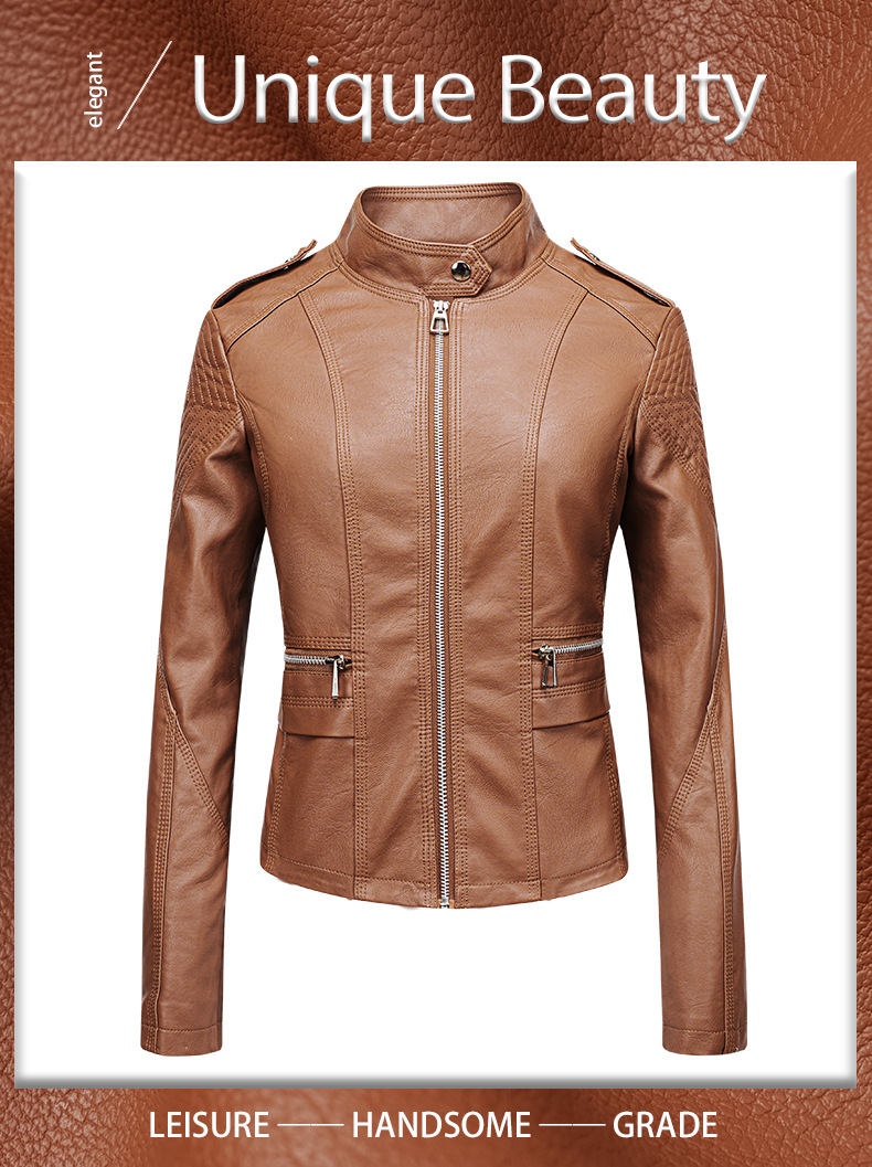 جاكت نسائي من الجلد الصناعي بتصميم يتميز بسحاب أمامي وجيوب جانبية بسحابات فضية