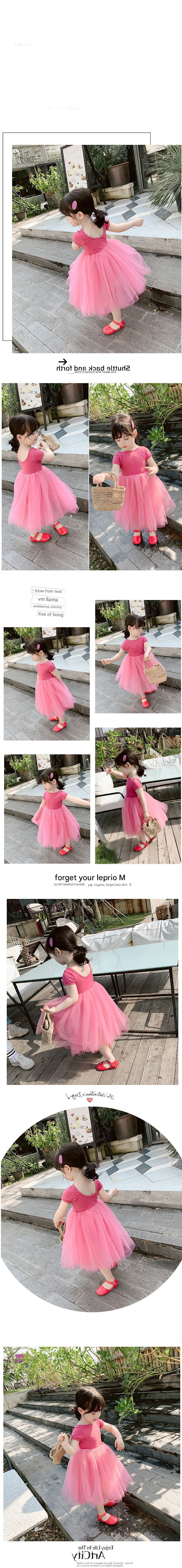 فستان بناتي من التل بأكمام قصيرة بتصميم منفوخ متعدد الطبقات