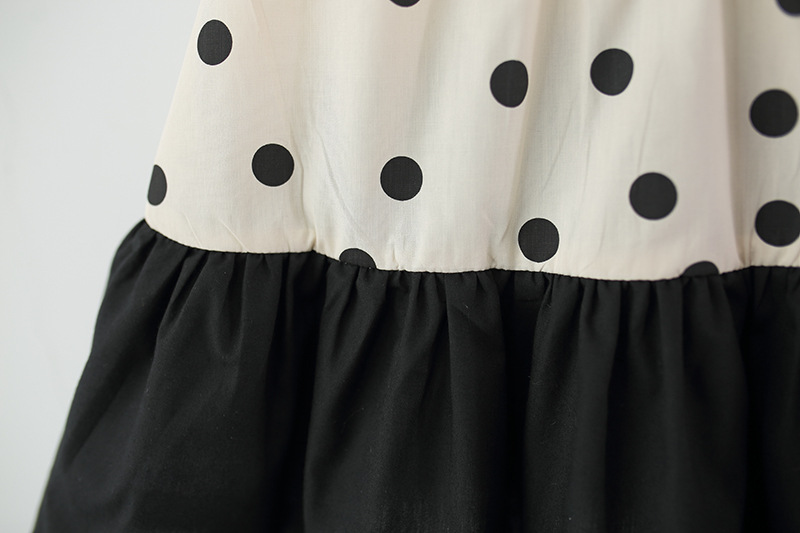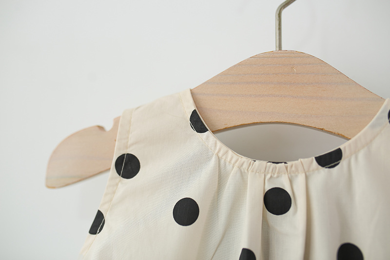 فستان بناتي بدون أكمام يتميز بتصميم نقاط مع تنورة مكشكشة وفيونكة كبيرة من الخلف