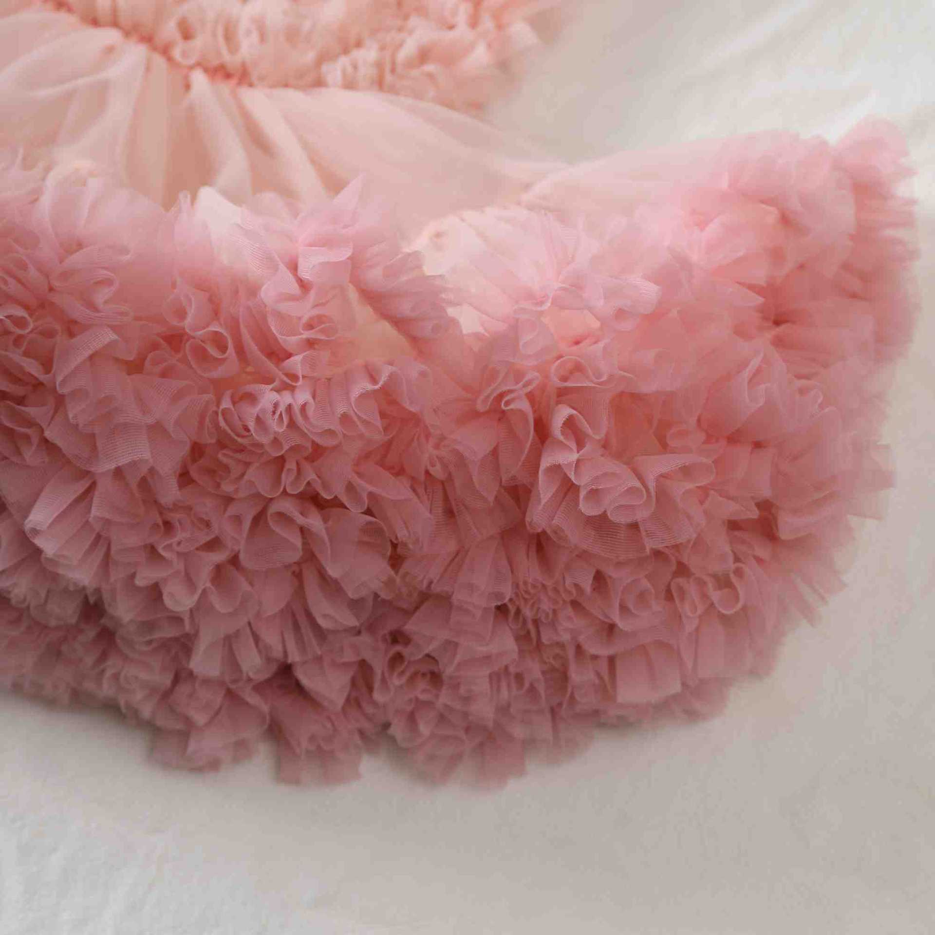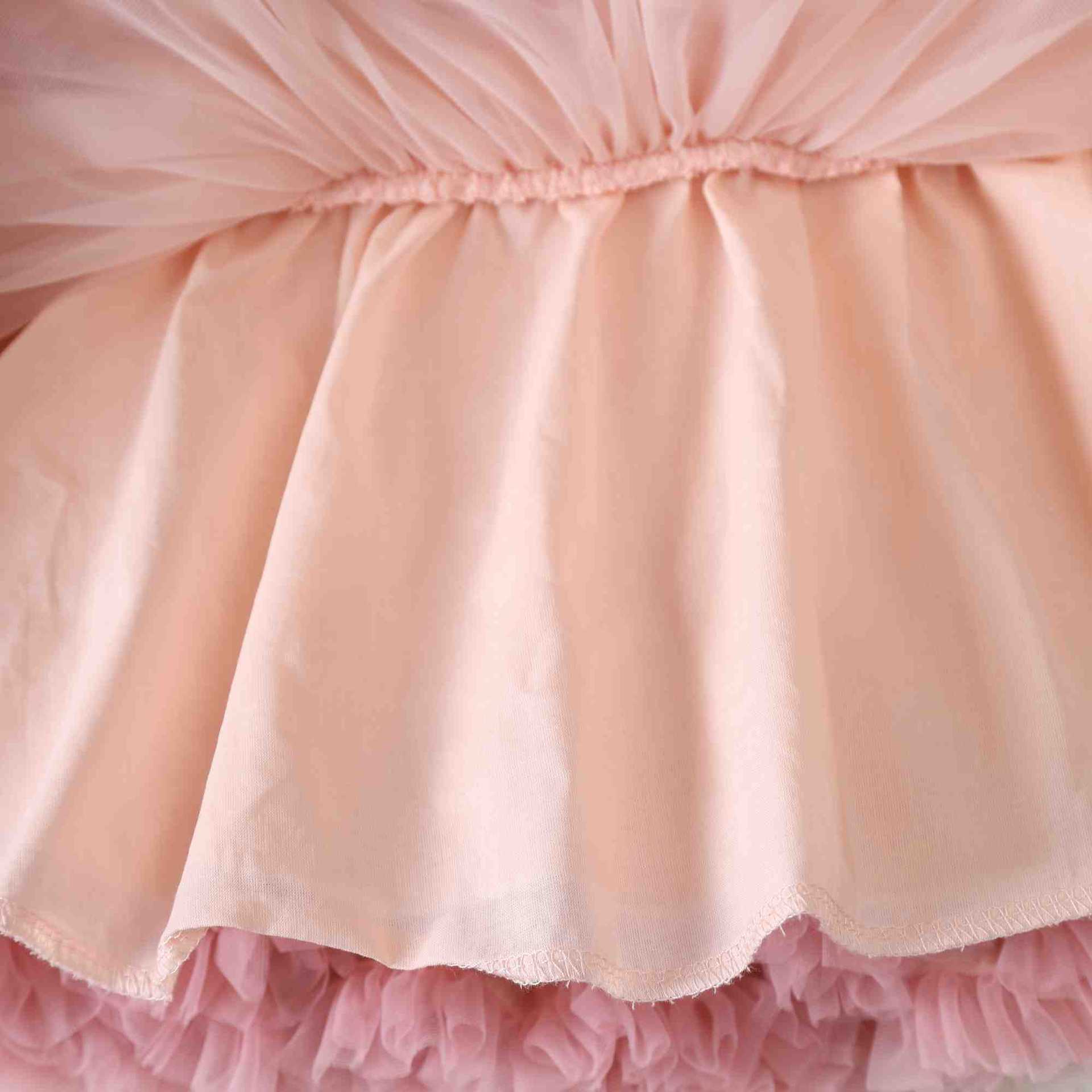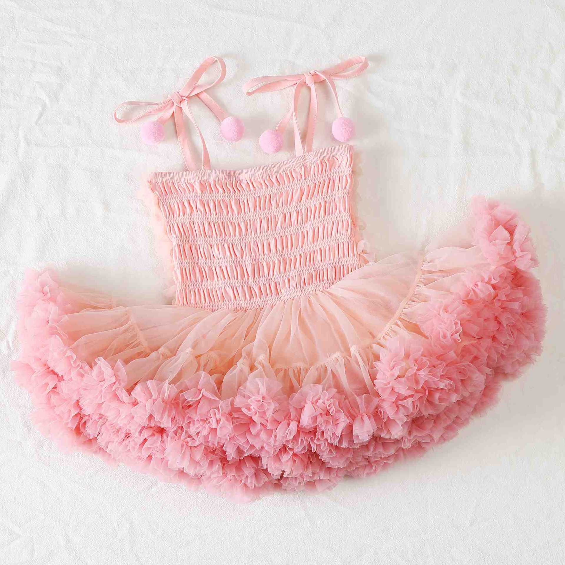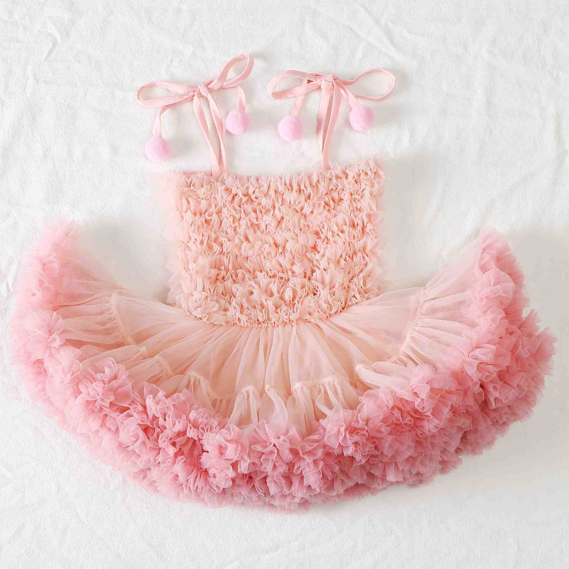 فستان بناتي مزين بكشكشة من التل الملون المنفوش متعددة الطبقات وحمالات قابلة للربط خصر مطاطي