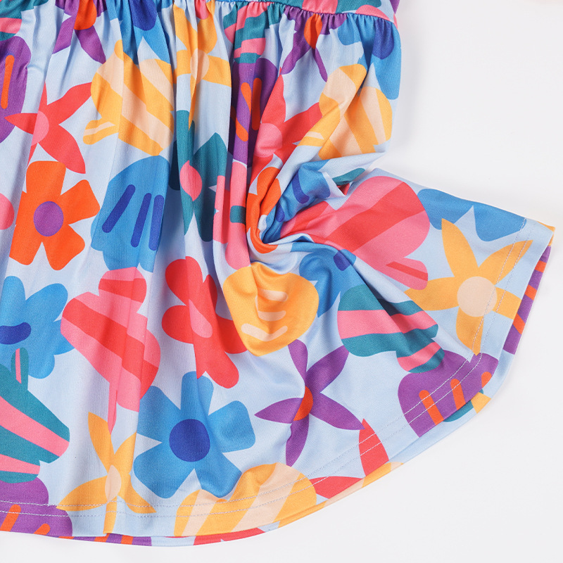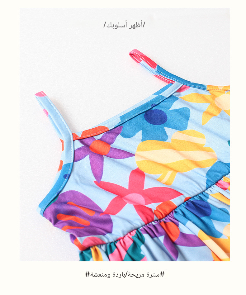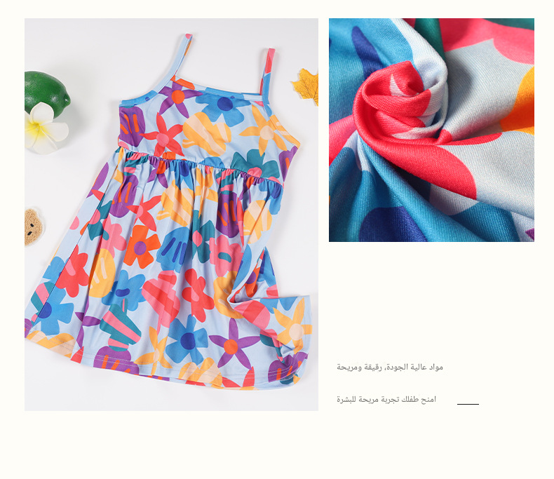 فستان صيفي بناتي بتصميم خفيف وحمالات رفيعة، مزين بطبعات زهور عصرية وملونة، مصنوع من قماش القطن