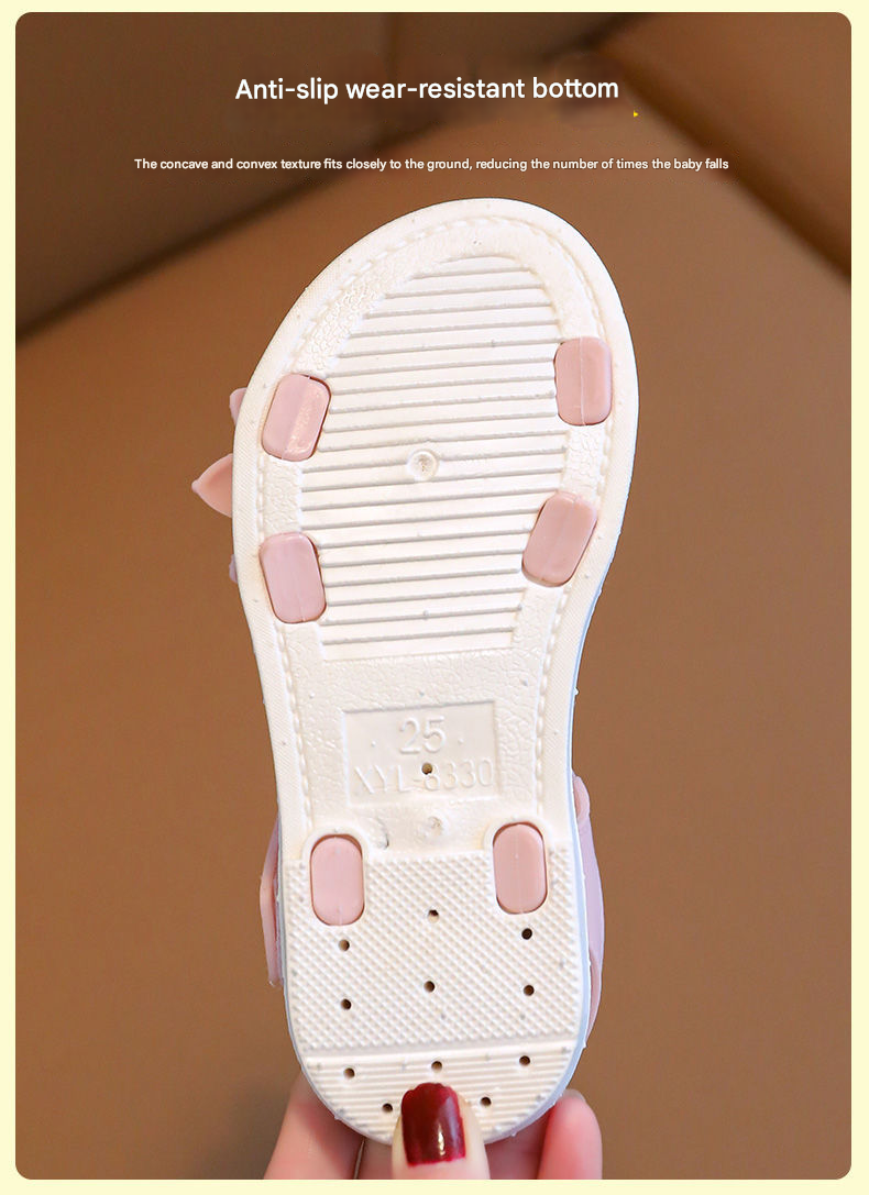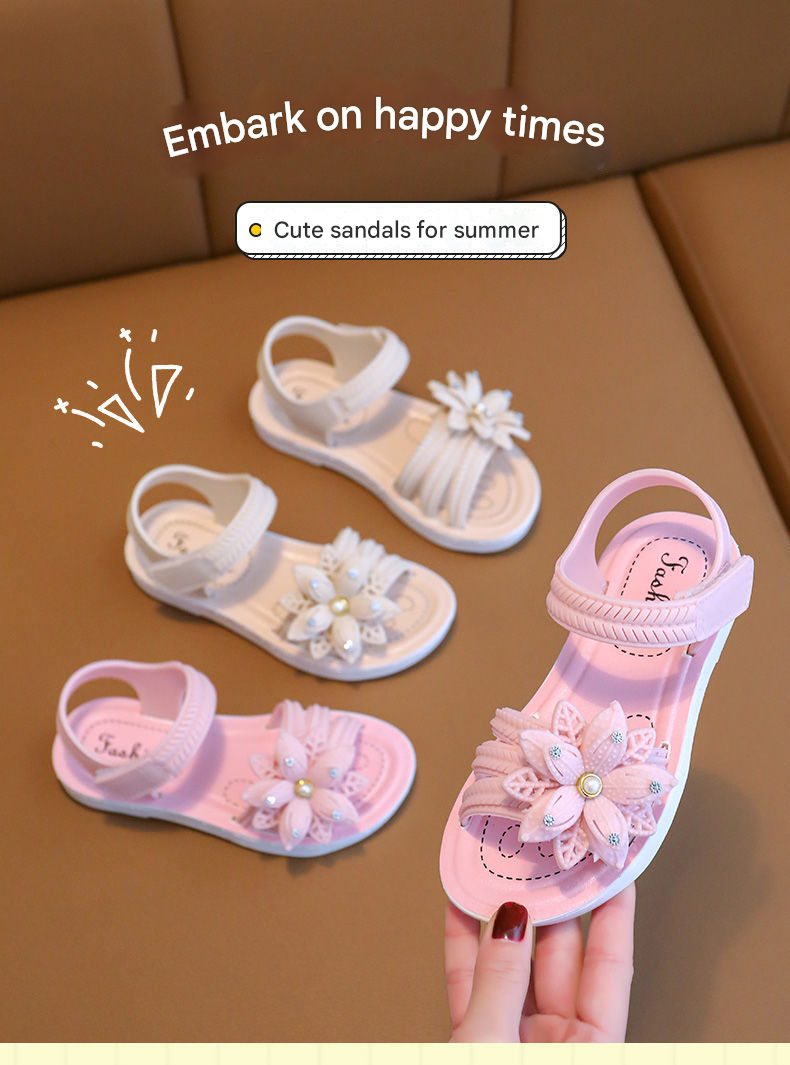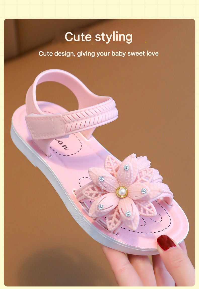 صندل بناتي مزين بوردة مجوفة بنعل داخلي مريح، والنعل الخارجي مسطح مانع للانزلاق، مع حزام خلفي قابل للتعديل