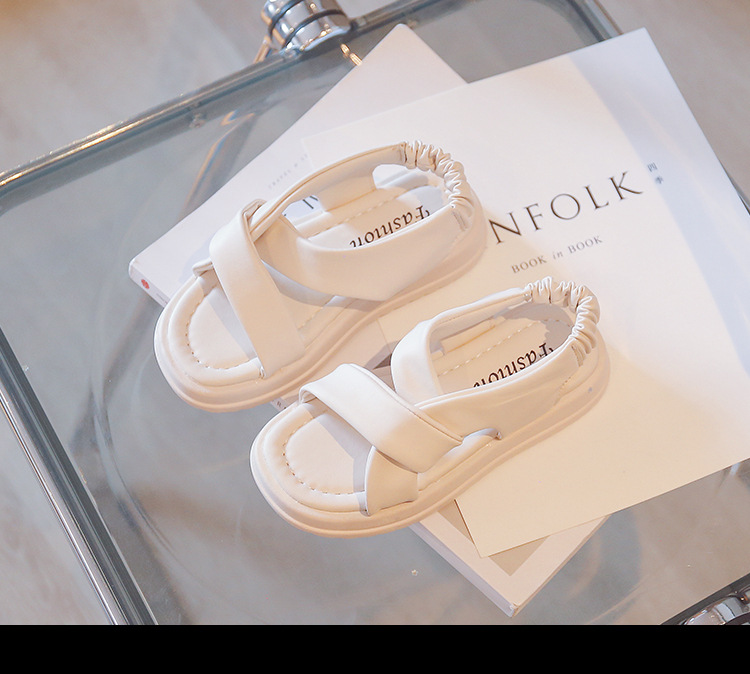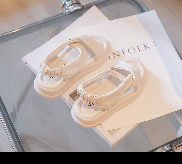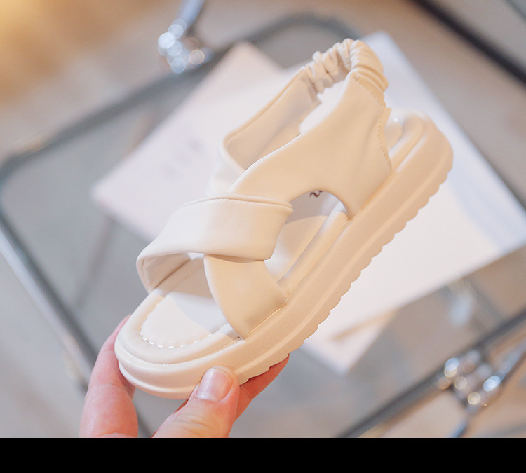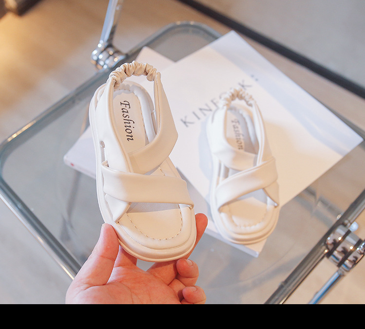 صندل بناتي صيفي يتميز بتصميم مفتوح مع أشرطة متقاطعة مبطنة من الجلد الصناعي وحزام خلفي مرن