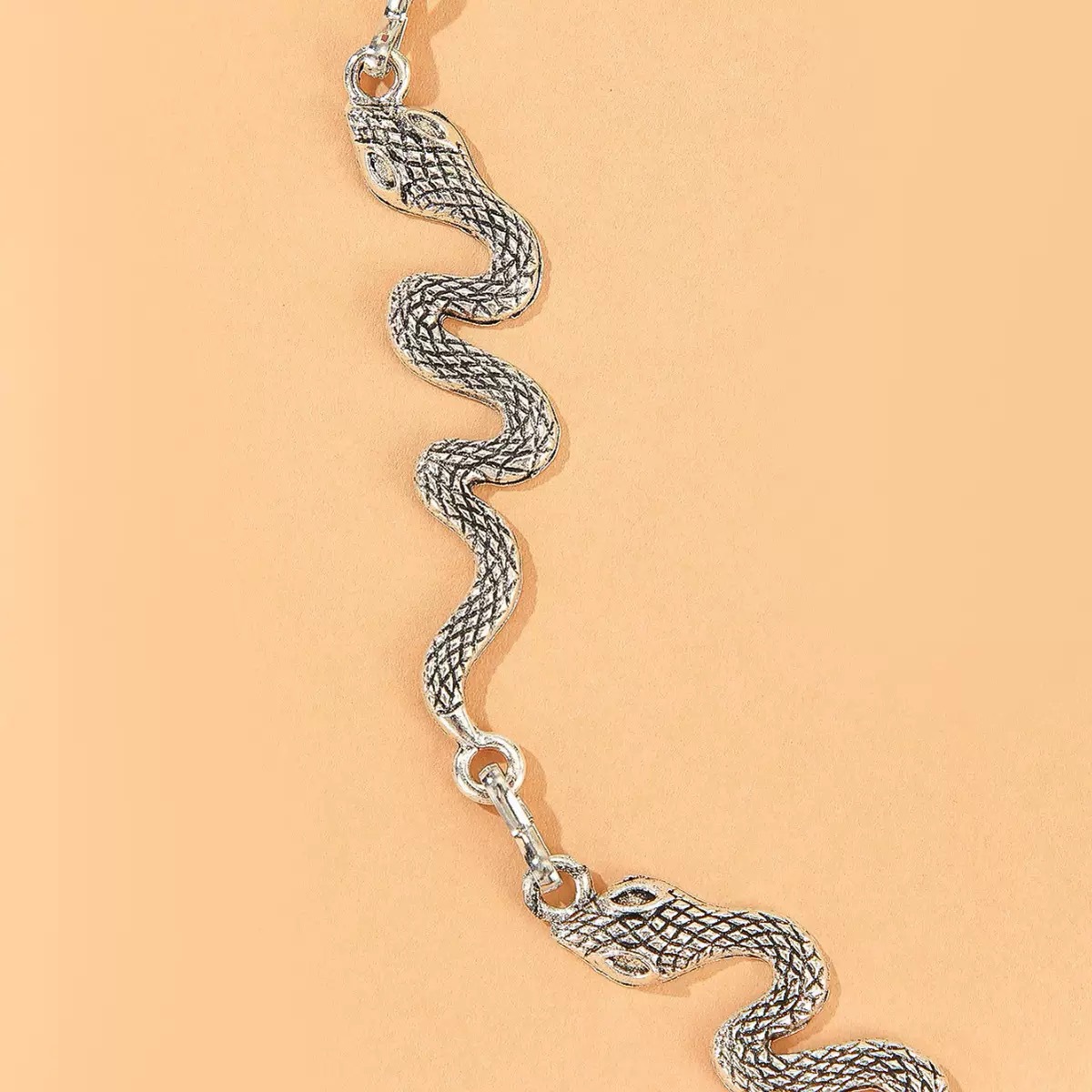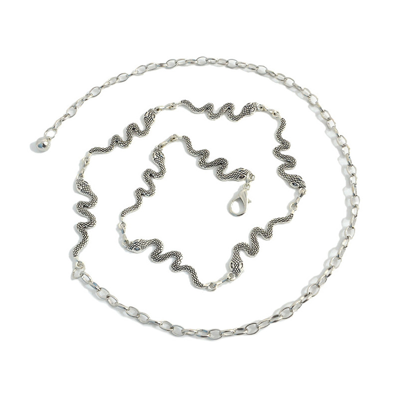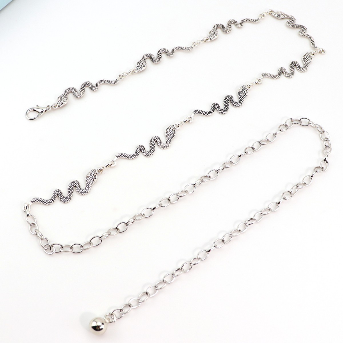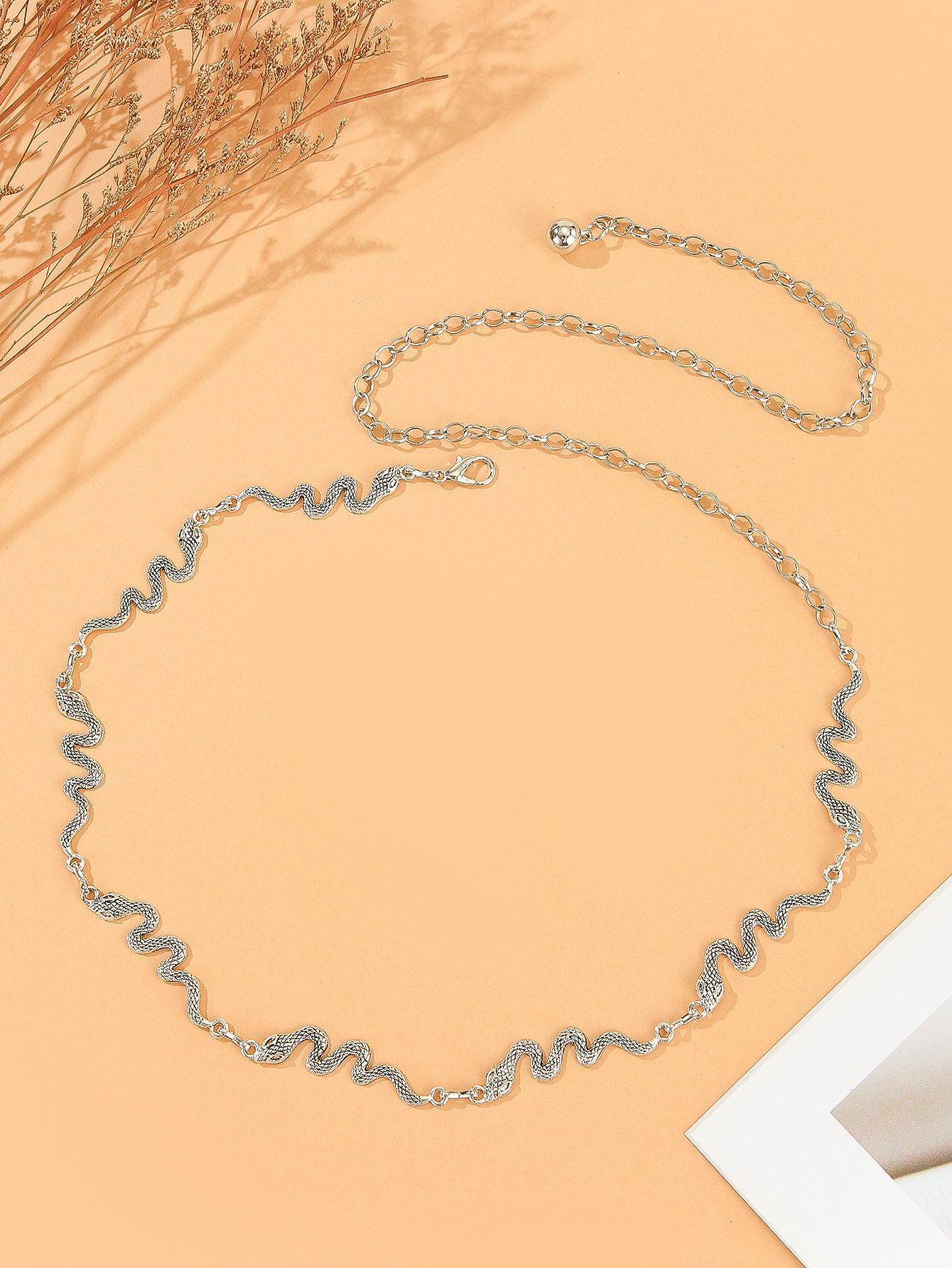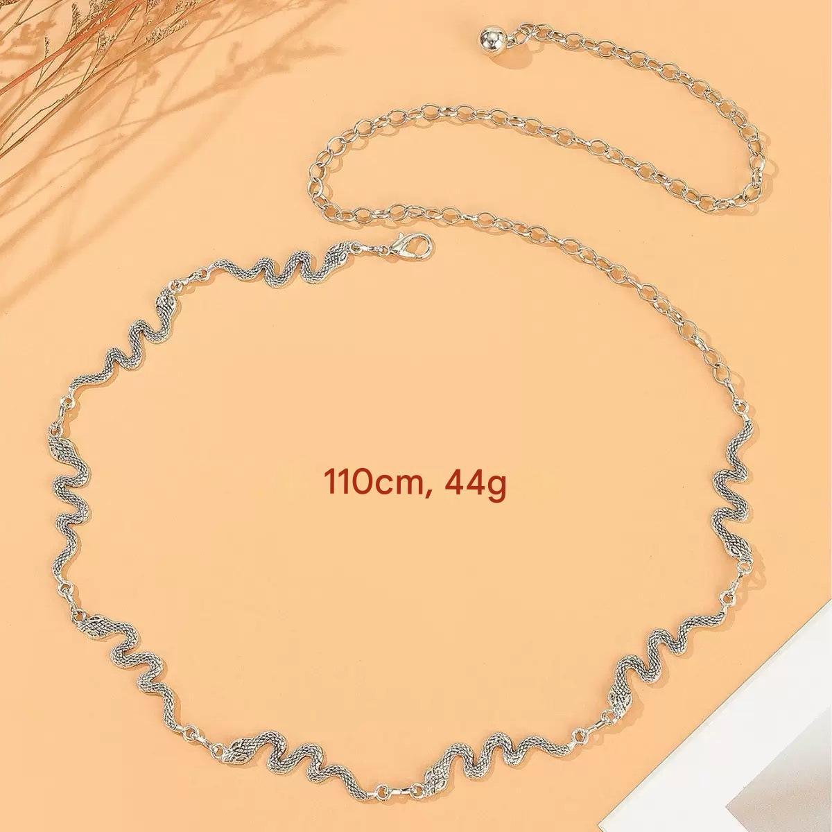 حزام خصر نسائي سلسلة فضي بتصميم ثعبان ، قابل للتعديل