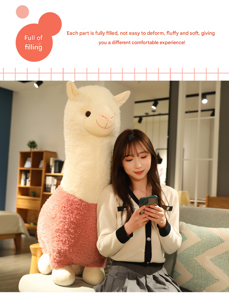 لعبة قطيفة ناعمة محشوة على شكل ألباكا، متوفرة بألوان متعددة، وتتميز بفروها الكثيف