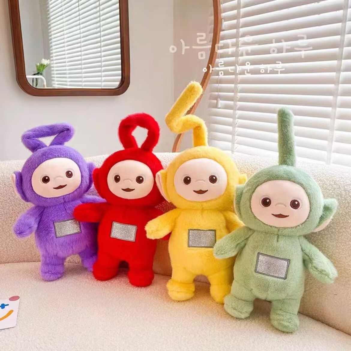 | وصف | أربع دمى قطيفة لشخصيات تليتابيز تتميز الدمى بتصميمها اللطيف، وتفاصيل وجه مطرزة بعناية، مع مربع فضي لامع على منطقة البطن |