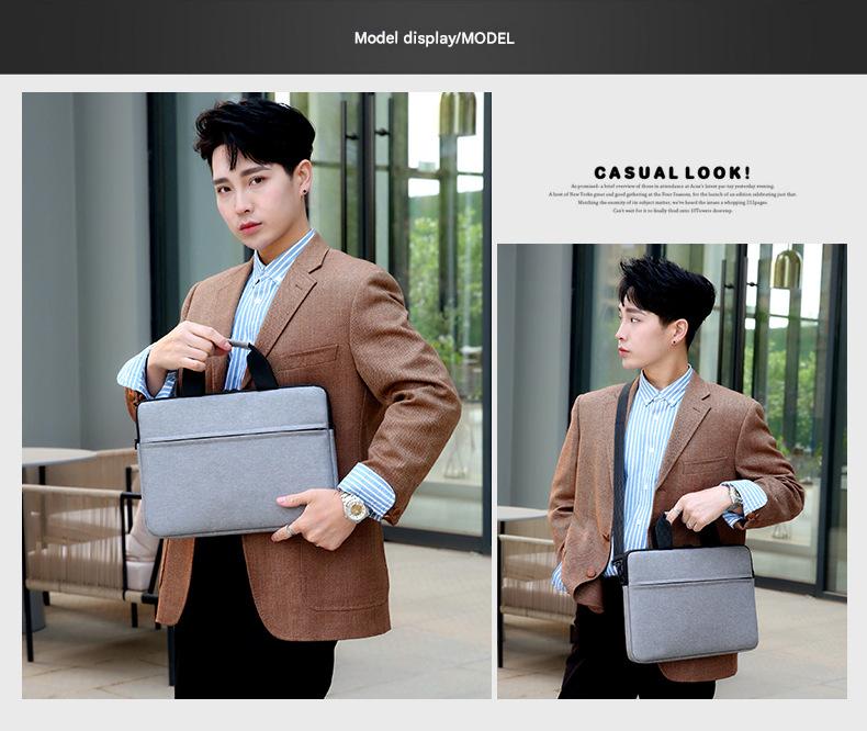 حقيبة لابتوب متعددة الوظائف، مقاومة للماء والخدش، بتصميم طبقتين وبطانة داخلية ناعمة مزودة بحزام كتف قابل للفصل