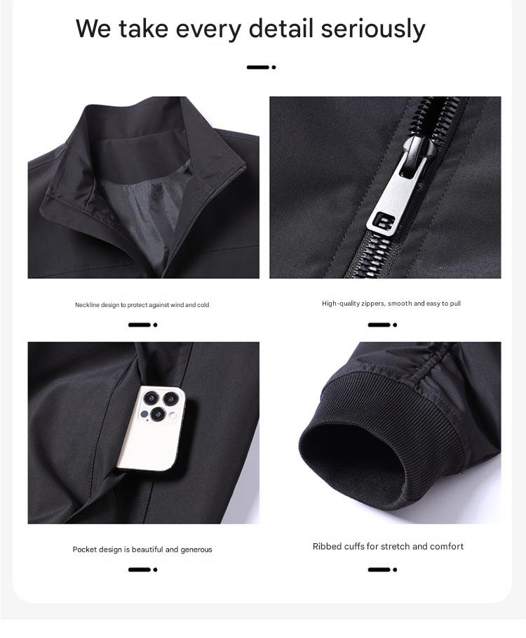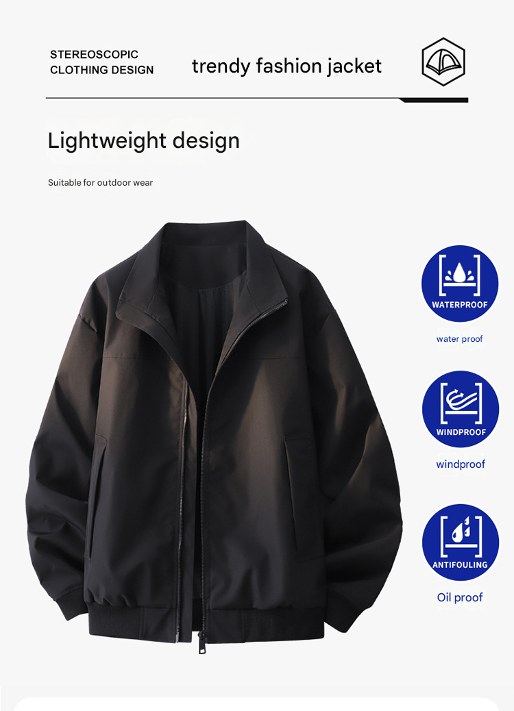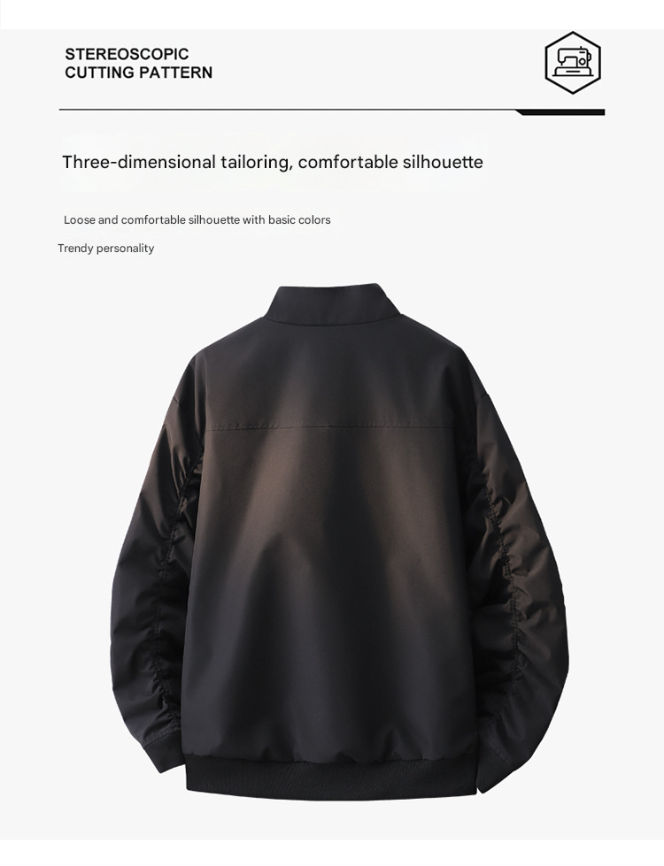 جاكت رجالي فضفاض مزود بسحاب كامل وياقة واقفة، ويتميز بقصة عصرية بأطراف أكمام وخصر مطاطية