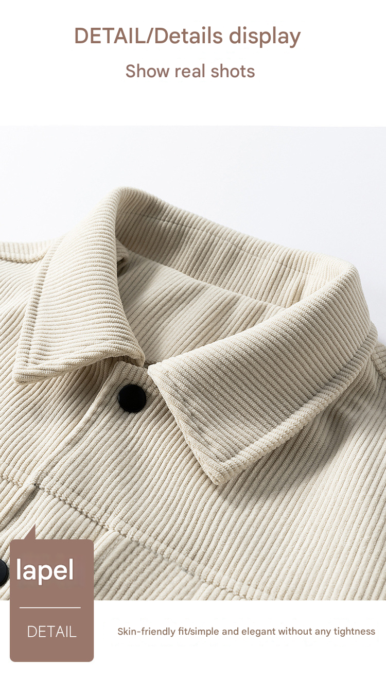 جاكت رجالي فضفاض مصنوع من قماش المخمل يتميزبجيوب أمامية على الصدر، وأطراف بأكمام مقاومة للرياح