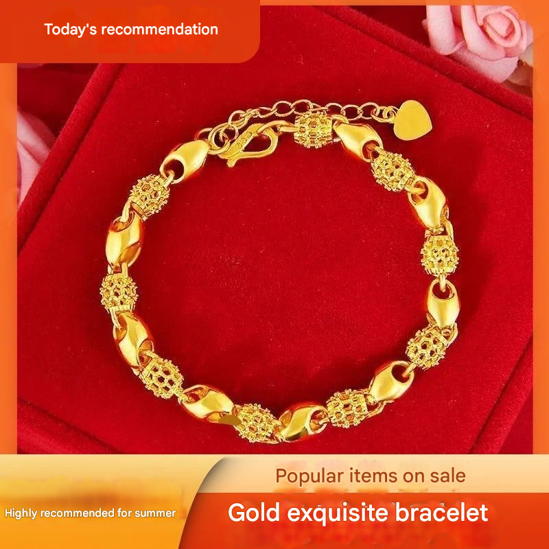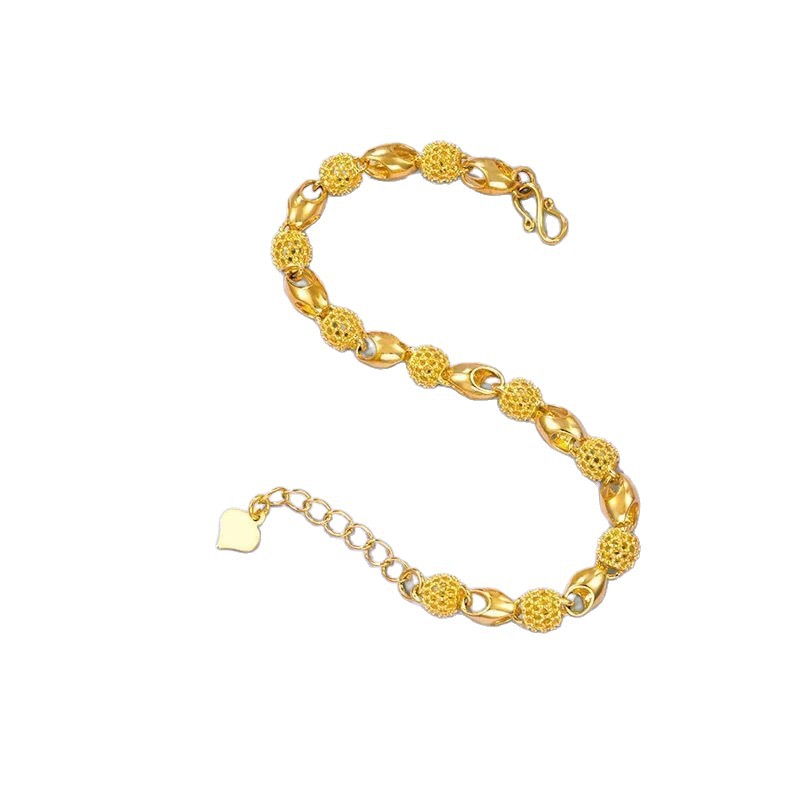 سوار نسائي بتصميم يجمع بين حلقات بيضاوية مصقولة وحبات كروية مفرغة مزخرفة تنتهي على شكل قلب