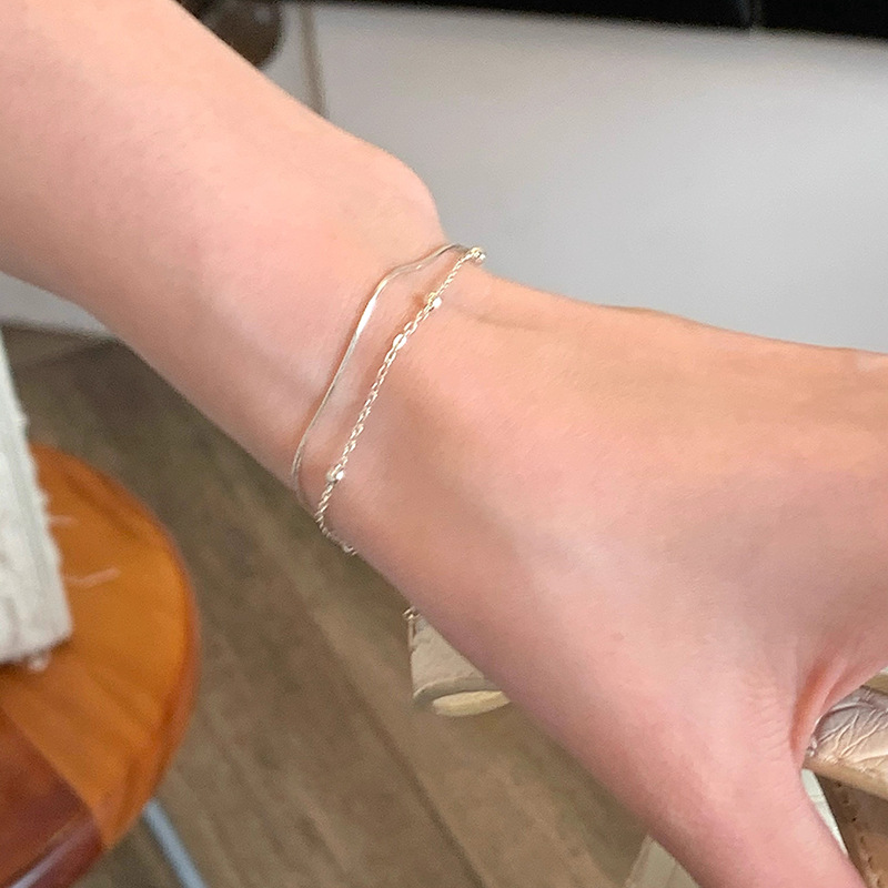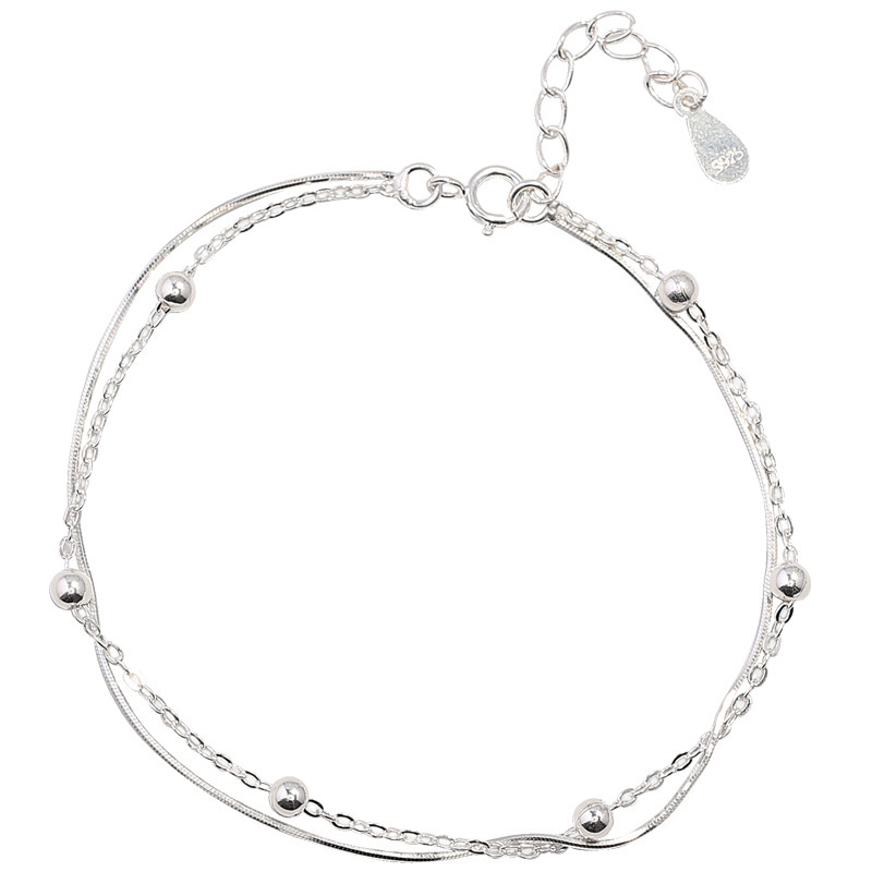 سوار نسائي بتصميم يجمع بين سلسلة ناعمة وأخرى مرصعة بخرزات وسلسلة قابلة للتعديل تنتهي على شكل دمعة