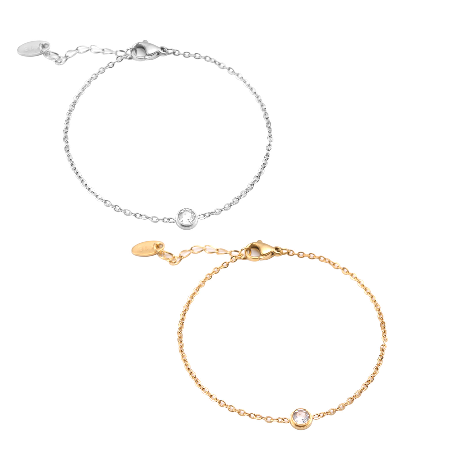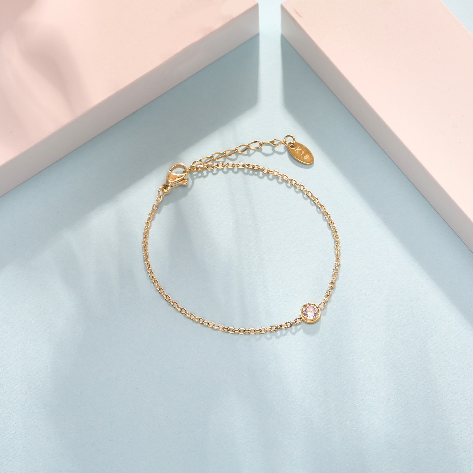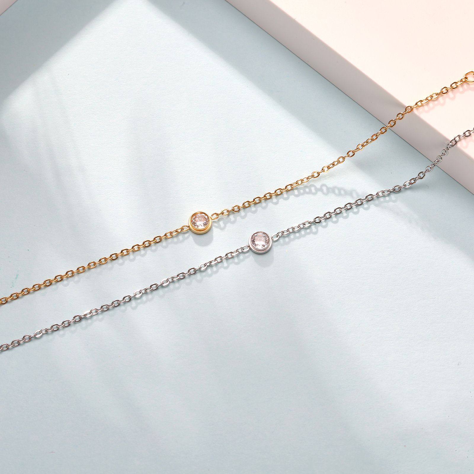 سوار نسائي بتصميم يجمع بين سلسلة رفيعة مزينة بخرزات كروية،مع قفل قابل للتعديل