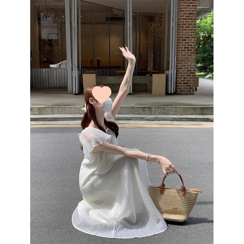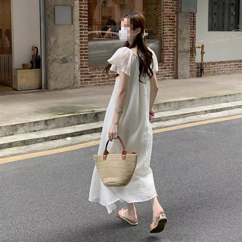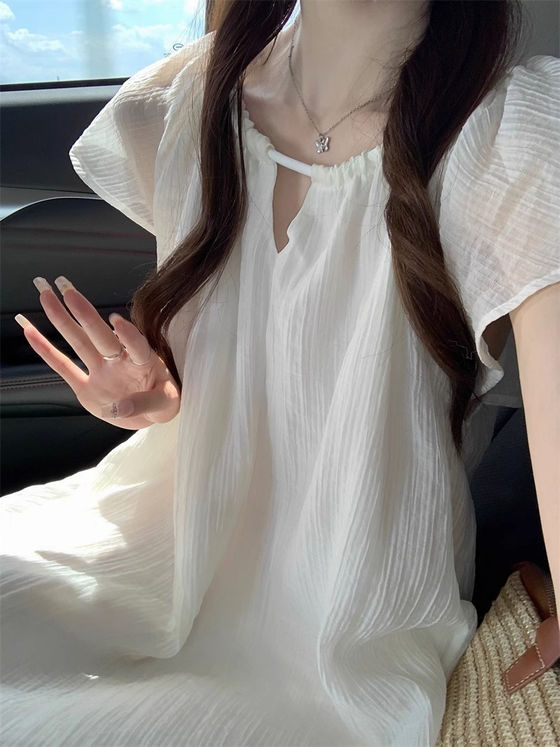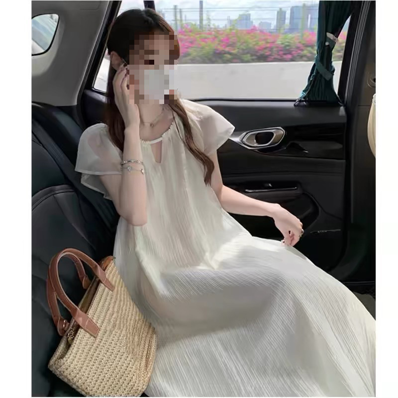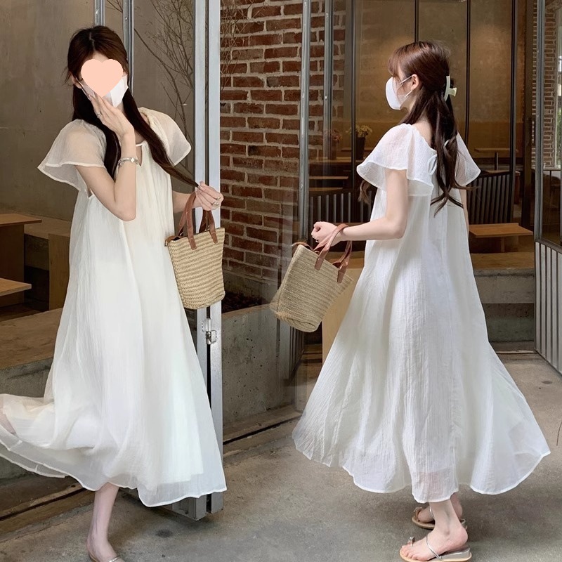 فستان نسائي طويل فضفاض للحوامل، يتميز بكسرات، وأكمام قصيرة بتفاصيل كشكشة ناعمة