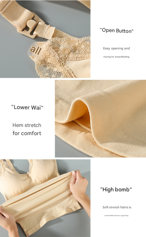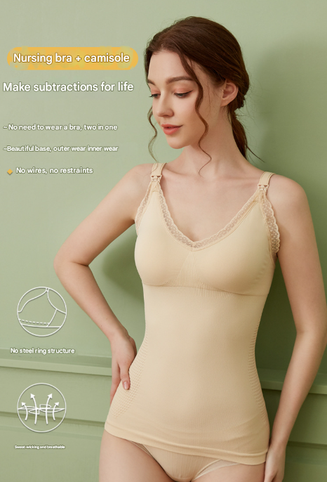 قميص داخلي للحوامل والرضاعة بتصميم مزود بحمالة صدر مدمجة مع فتحات علوية للرضاعة، وقماش قابل للتمدد ومسامي