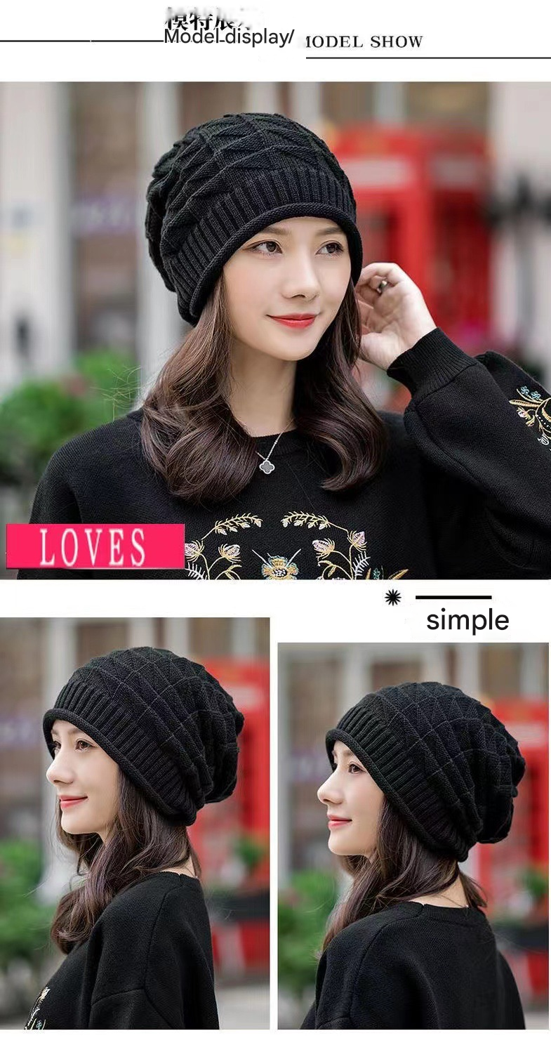 قبعة نسائية كاجول دافئة من الصوف المحبوك بنمط شبكي،بتصميم عصري