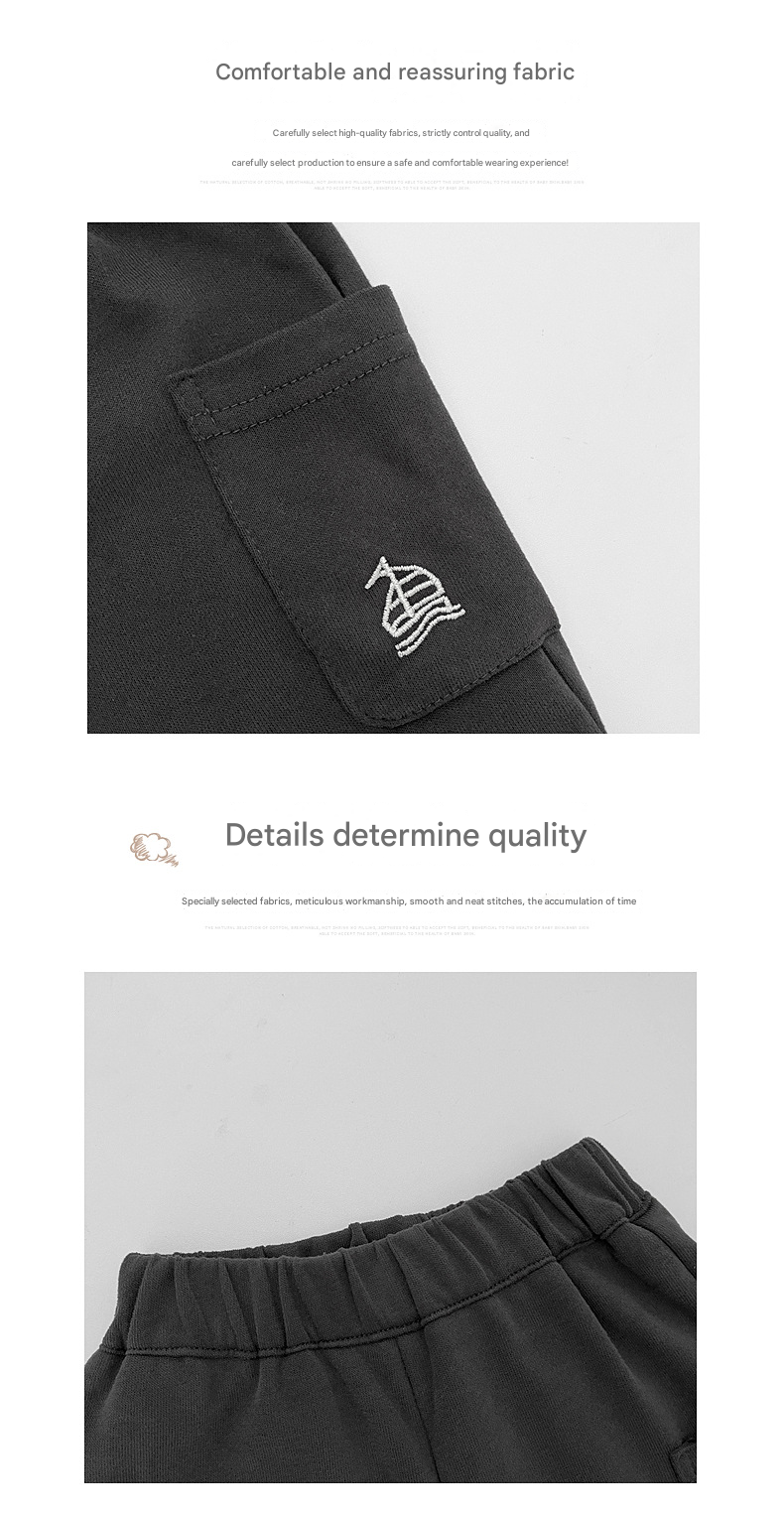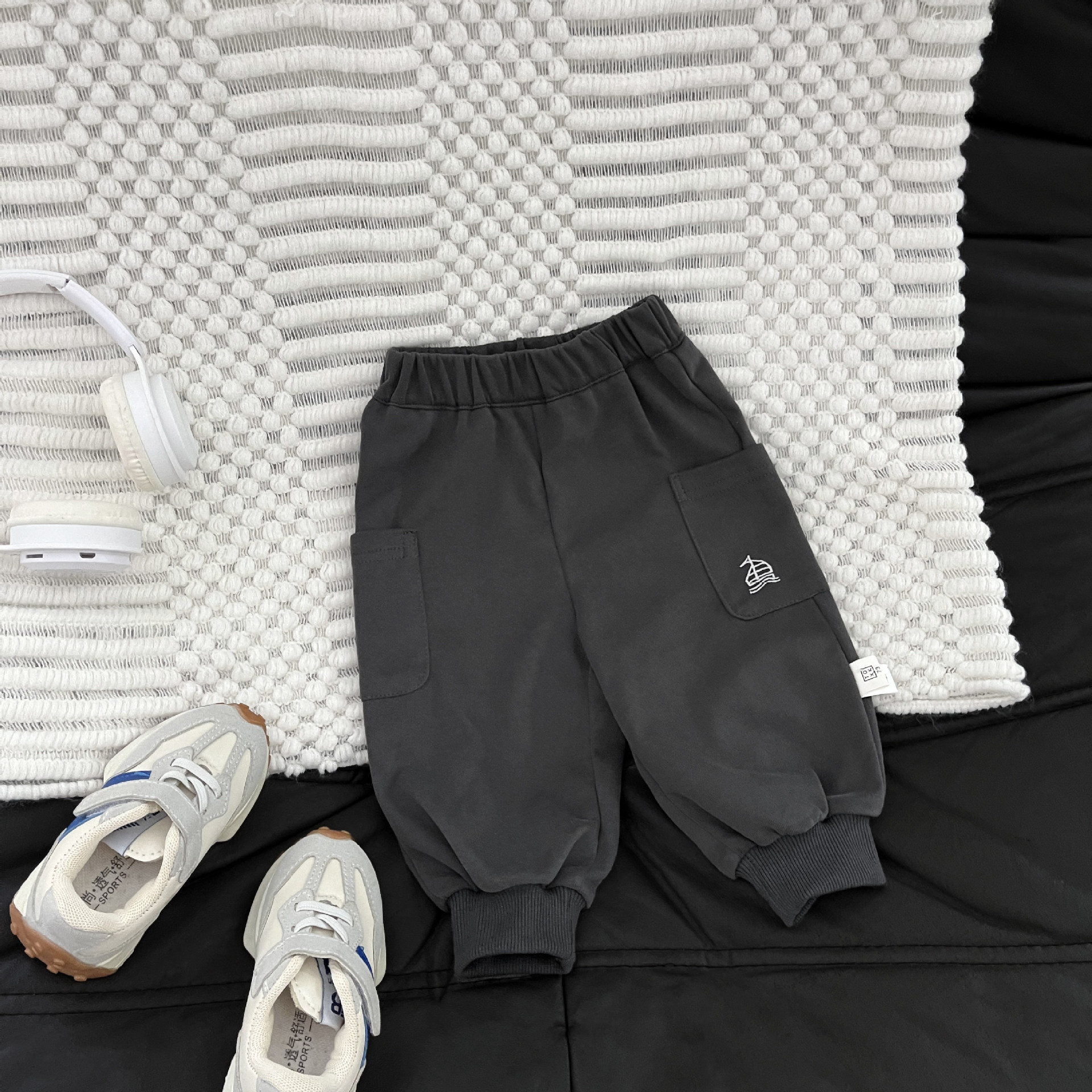 بنطلون رياضي فضفاض للأطفال، يتميز بتصميم مزود بجيوب جانبية مطرزة برمز السفينة