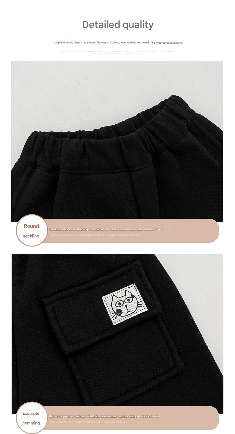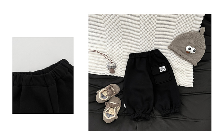 بنطلون شتوي ودافئ للأطفال، بتصميم مزود بجيوب جانبية وطبعة قطة لطيفة، ومصنوع من قماش سميك مبطن بالصوف