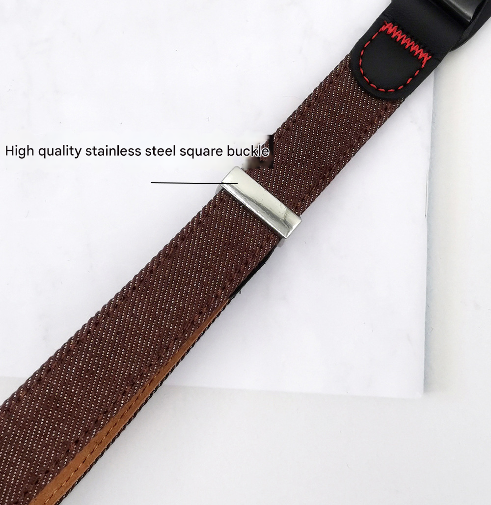 وصف | يجمع الحزام بين الأناقة والمتانة، فهو مصنوع من قماش الدنيم الأنيق مما يجعله مريحًا ومقاومًا للاهتراء يتميز الحزام أيضًا بوجود مشبك مربع |