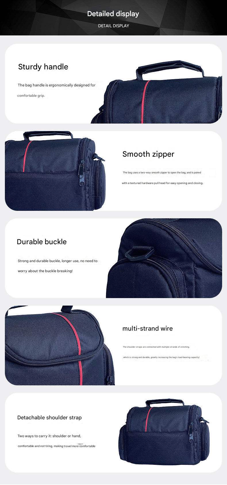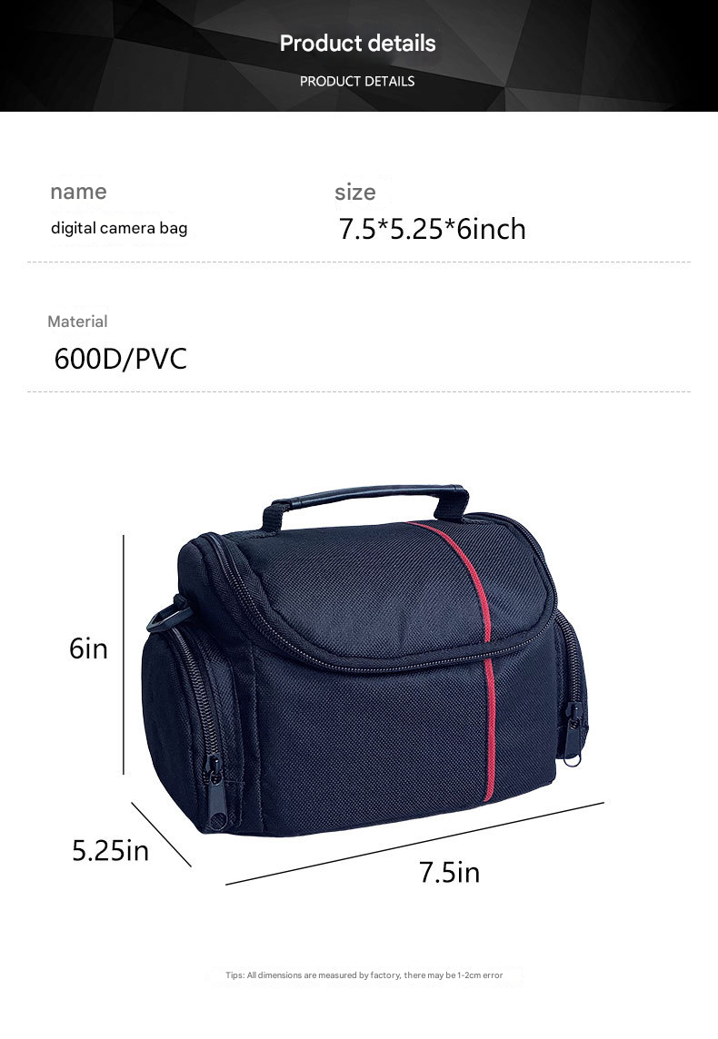 حقيبة كاميرا رقمية متعددة الأغراض بتصميم مدمج ومقاوم للماء، مزودة بحزام كتف قابل للفصل ومقابض مريحة