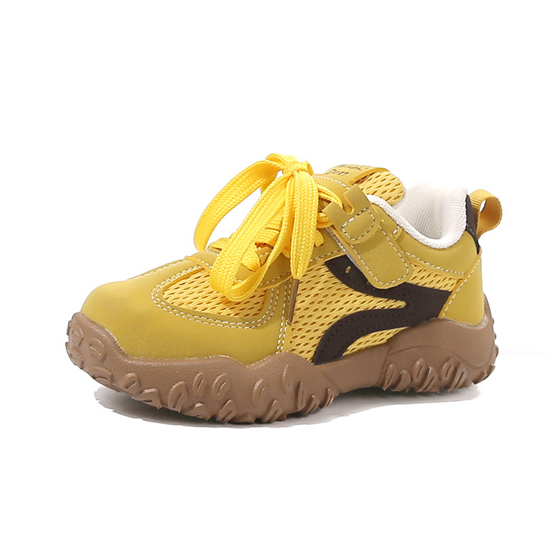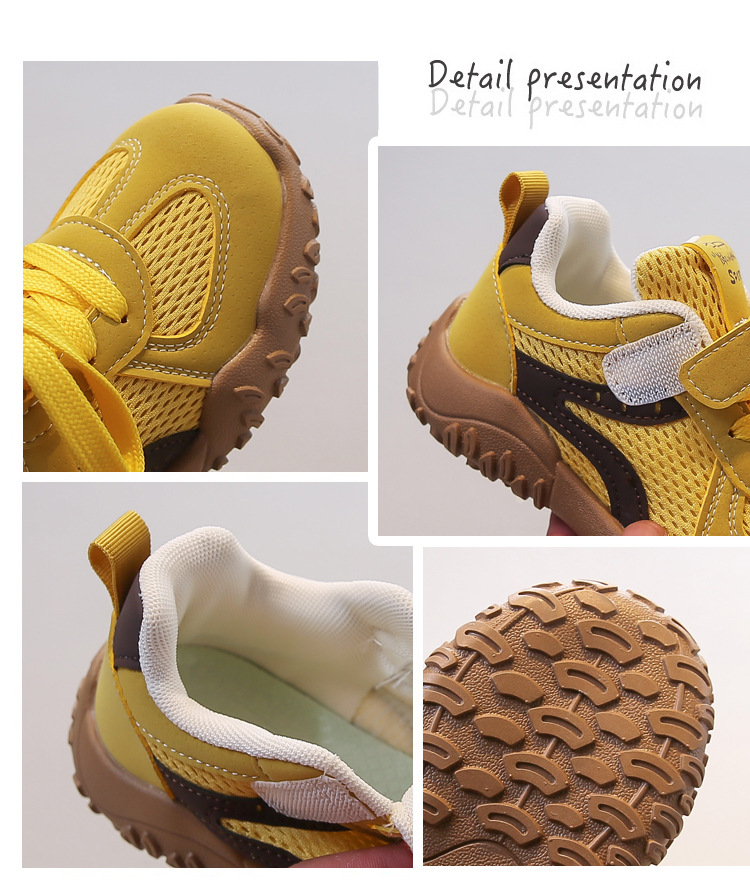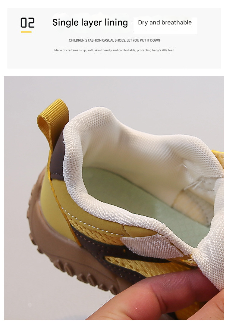 حذاء رياضي للأطفال بتصميم شبكي خفيف مسامي ومضاد للانزلاق، سهل الارتداء والخلع