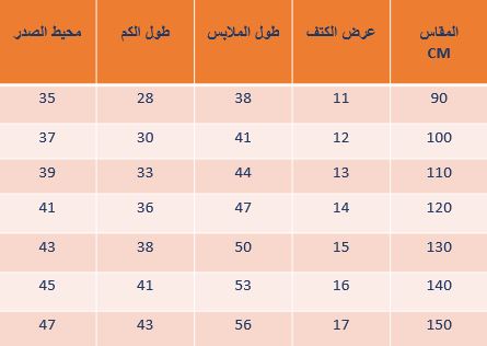 90cm-100cm-110cm-120cm-13cm-140cm-150cm : المقاسات